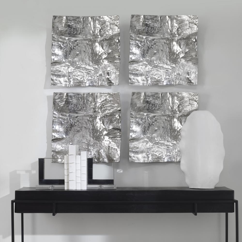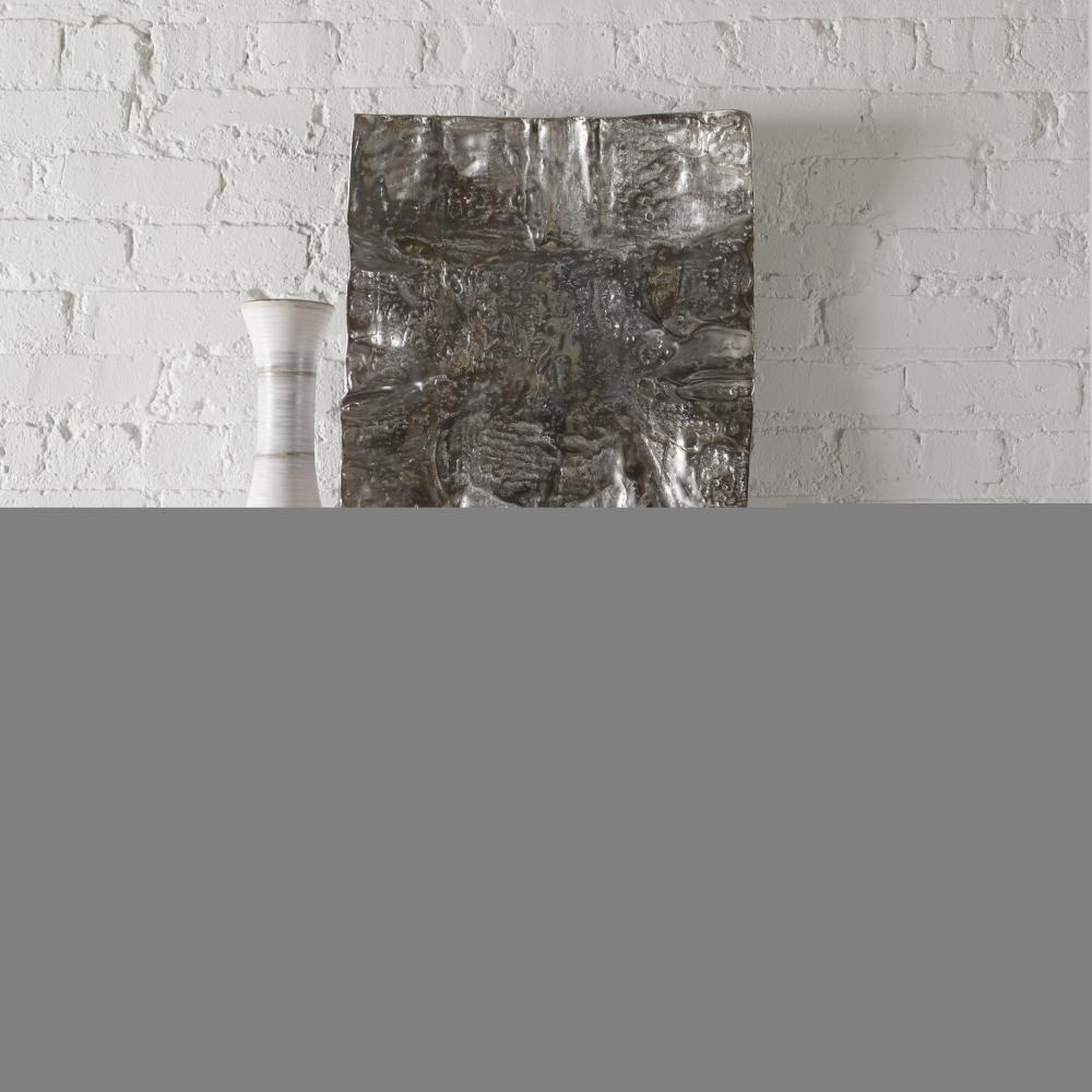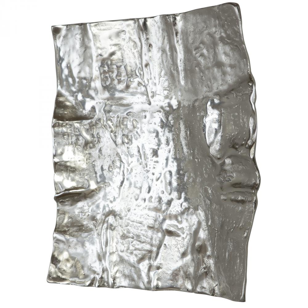 Handcrafted Cast Aluminum Wall Accent Showcases A Heavily Textured Organic Shape in A Nickel Plated Finish. A Circular Hanger on The Back Provides Countless Hanging Options, Enabling Truly Unique Wall Designs. Felt Pads Also Included for Use As A Tabletop Tray.