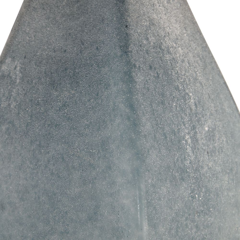 Deep Ocean Blue Glass with An Acid Etched Texture, Accented with Brushed Nickel Plated Details and A Thick Crystal Foot. The Round Hardback Drum Shade is A White Linen Fabric.