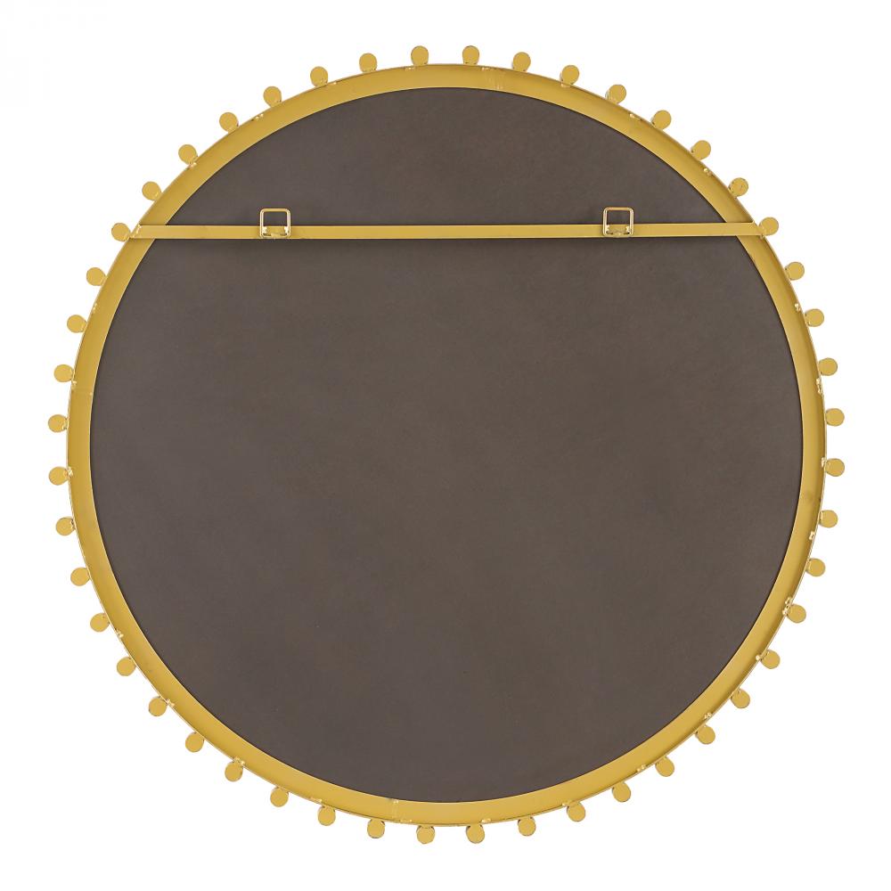 The Avelyne Round Mirror Blends Elegance With Modern Design, Featuring A Plated Antique Brass Outer Frame That's Surrounded By Thick Acrylic Rods.