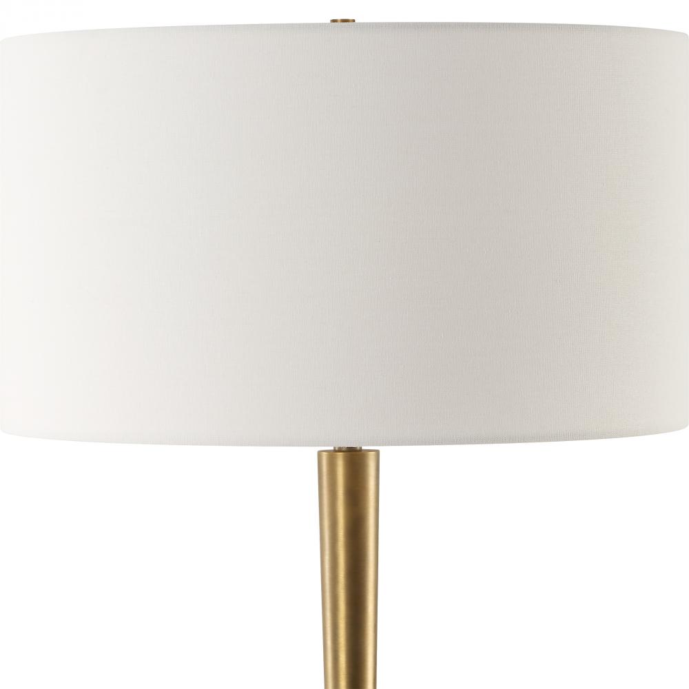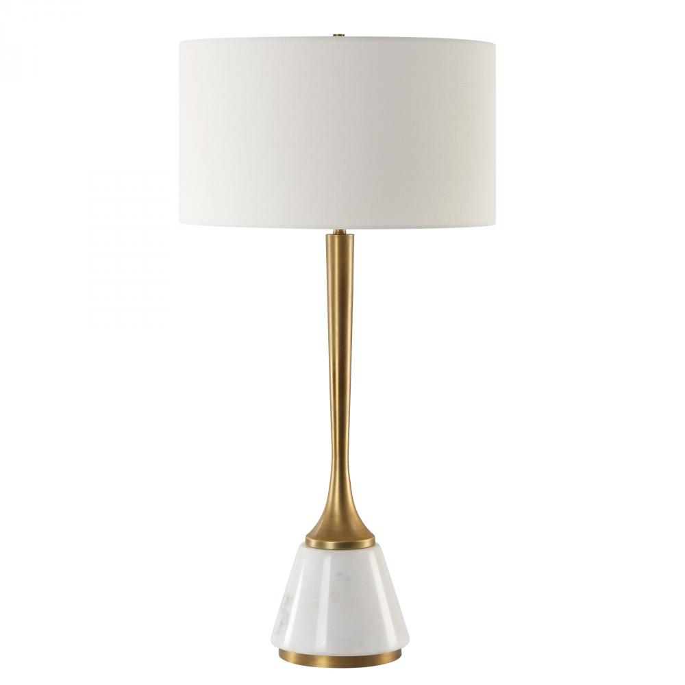 This Table Lamp Showcases A Fusion Of Refined White Marble And Plated Antique Brass. With Its Elegant Fluted-style Neck, This Lamp Adds Timeless Sophistication To Any Space. The Round Hardback Drum Shade Is A Casual White Linen Fabric.
