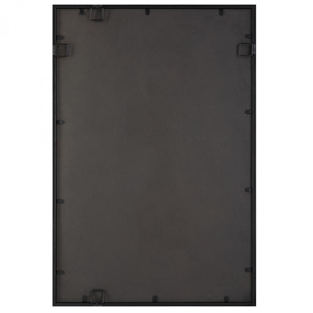 This Urban Industrial Design Features An Iron Frame Finished in Matte Black Adorned with Plated Brass Smooth Screw Caps. Mirror Has A Generous 1 1/4" Bevel. May Be Hung Horizontal or Vertical.