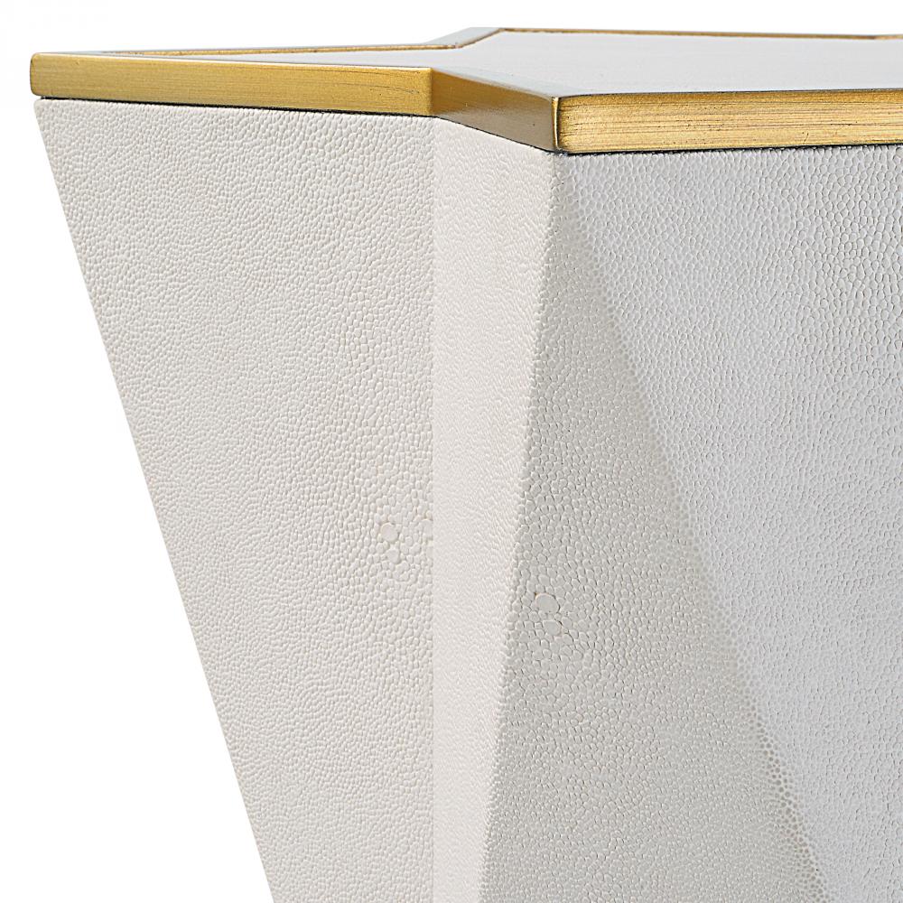 Unique Star Shaped Accent Table Features A Stylish White Faux Shagreen Wrap, Accented with A Hand Applied Gold Leaf Trim.