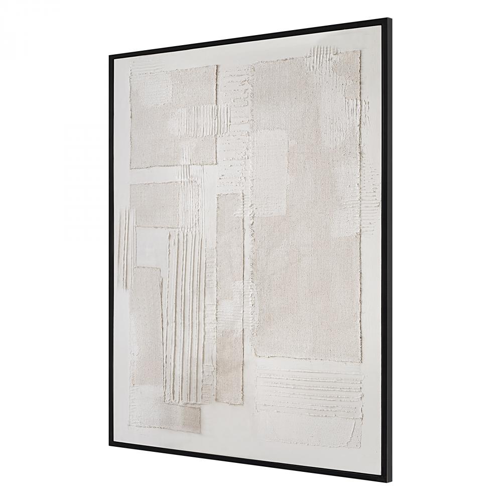 The Clean Slate Hand Painted Canvas Is An Ode To New Beginnings And The Beauty Of Simplicity. Its Heavy Texture Adds A Tangible Depth In Whispers Of White And Cream And A Crisp Black Gallery Frame Completes The Piece. Due To The Handcrafted Nature Of The Artwork, Each Piece May Have Subtle Differences. This Piece May Be Hung Horizontal Or Vertical.