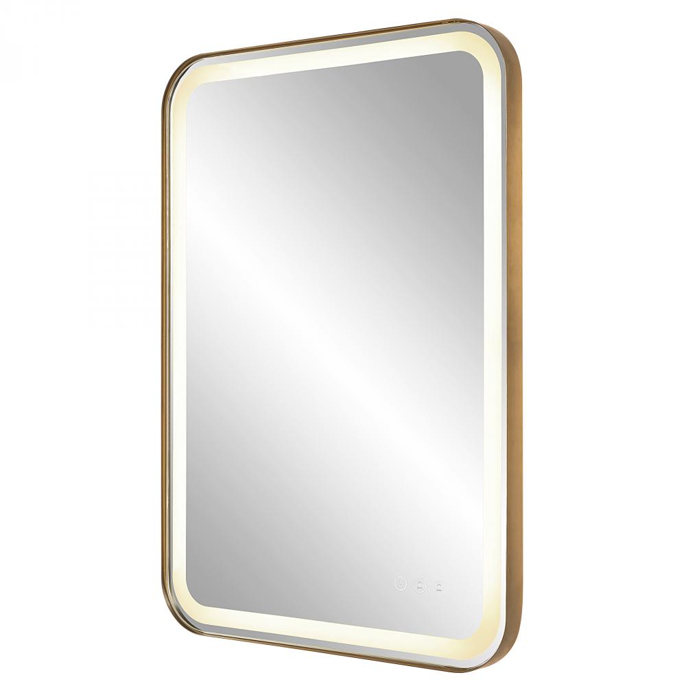Versatile in Design, This Vanity Mirror Has Integrated LED Lighting That Illuminates Through The Frosted Strip in The Polished Edged Mirror. The Plated Brushed Brass Stainless Steel Frame is Off Set From The Wall to Allow Ambient Lighting From The Back. Easy to Use Touch Buttons Are Featured on The Bottom Right of The Mirror with An on Off Function, Touch and Hold Kelvin Control From 2700k to 4000k, and Touch and Hold Brightness Control. LED Lights Rated At 40,000 Hours. Ships with Plug, But Can Be Hardwired Professionally. Touch Screen Icons Continue to Illuminate When Powered Off for Easy Navigation in Dark Settings.