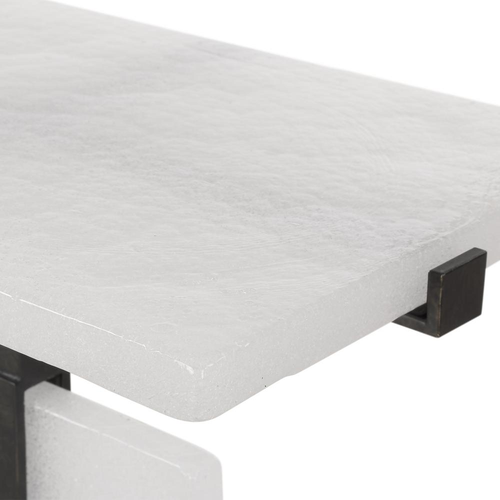 Composed Of An Aged Bronze Base Supporting Two Beautiful Slabs Of Bubble Glass. Bubble Glass Is Crafted From Tiny Air Bubble Trapped Within The Glass Creating A Mesmerizing Visual Effect And Allowing Some Light To Pass Through.
