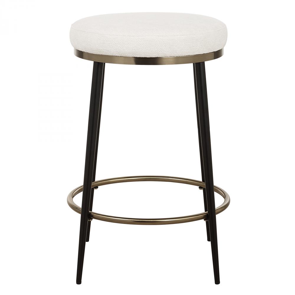 A Streamlined Silhouette With Sophisticated Finishes Of Matte Black And Brushed Brass. Topped With A Plush Cushion Upholstered In A Textured Cream Chenille.