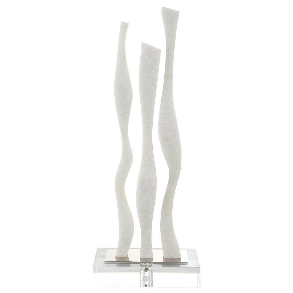 Inspired By Striking Works of Modern Art, This Abstract Sculpture is Crafted From Ivory Man-made Stone That Accurately Replicates The Look of Thassos Marble and is Accented By An Elegant Crystal Foot and Metal Accent.