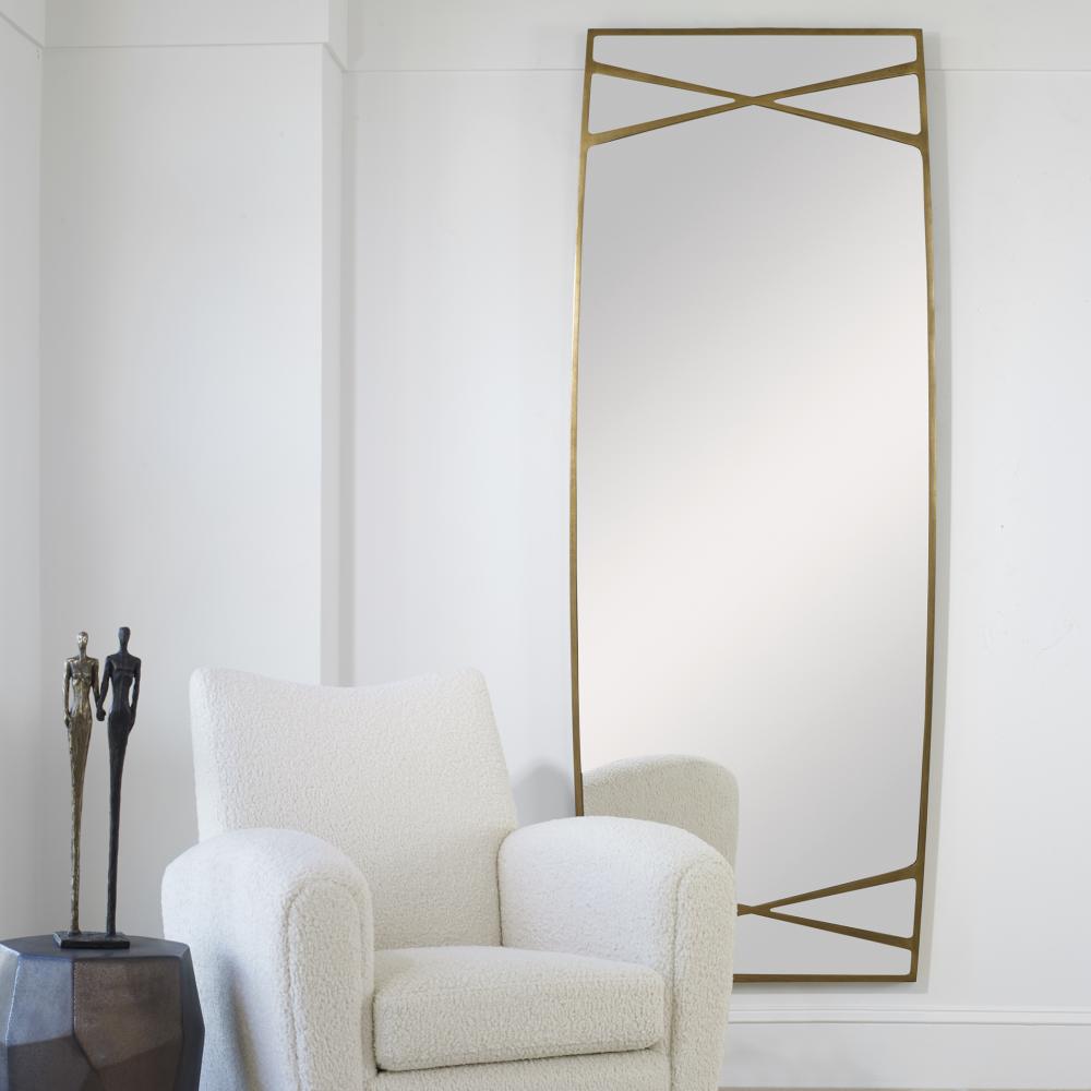 Sure to Make An Elegant Statement, This Oversized Mirror Sports A Curved Silhouette in An Antique Gold Finish with Crossed Details. May Be Hung Horizontal or Vertical.