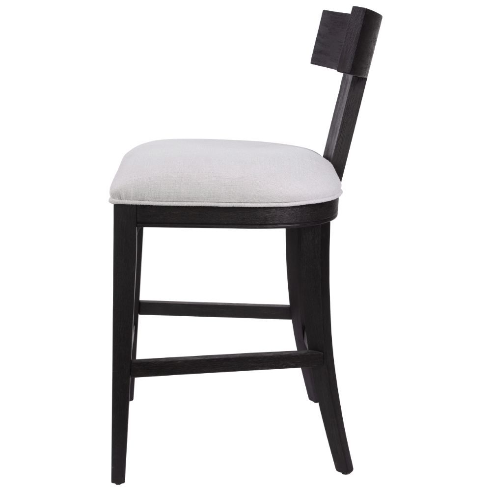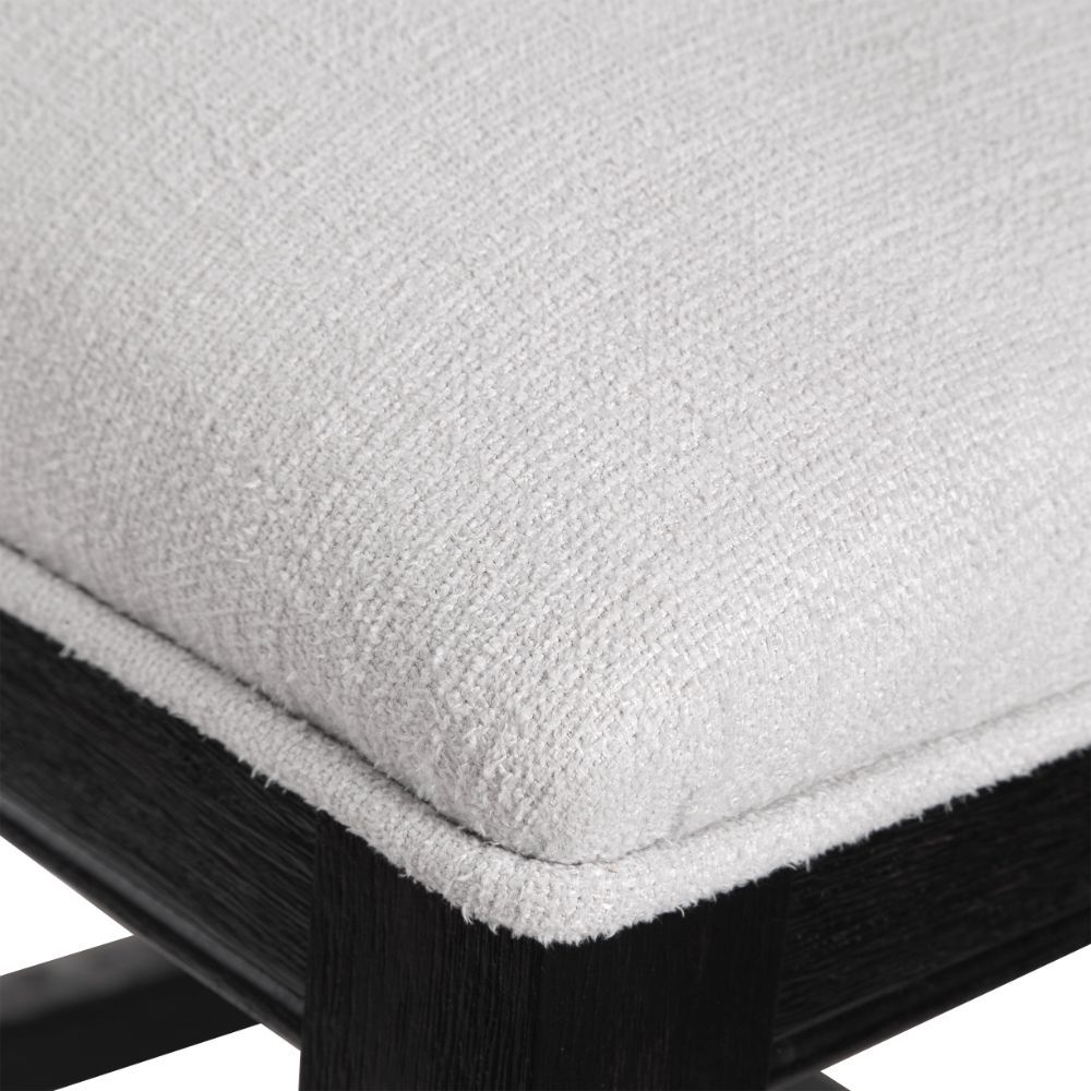 This Modern Take on A Klismos Design Features A Curved Rubber Wood Frame That Has Been Wire Brushed and Rubbed in A Charcoal Black Stain, Paired with A White Slubbed Performance Fabric Cushion. Seat Height is 26".