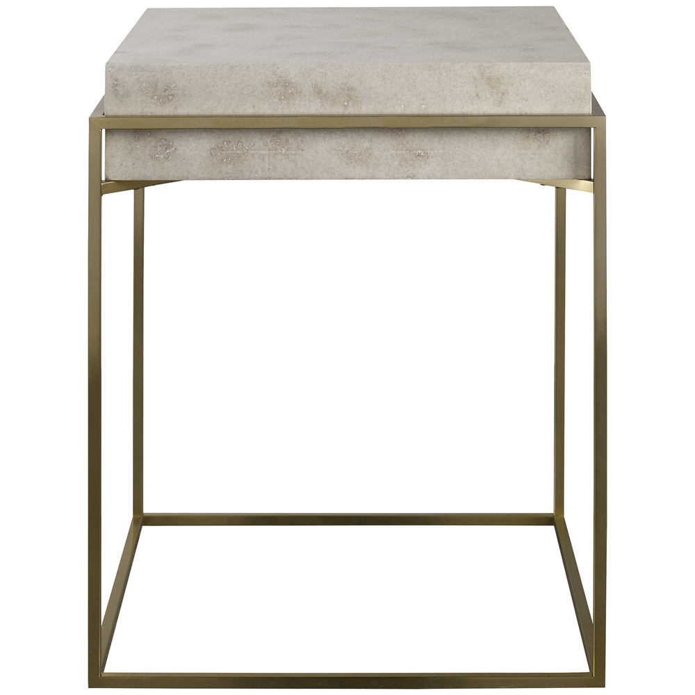 This Clean Modern Accent Table Showcases An Inset Ivory Burl Veneer Top Supported By A Sleek Brushed Brass Plated Stainless Steel Frame.