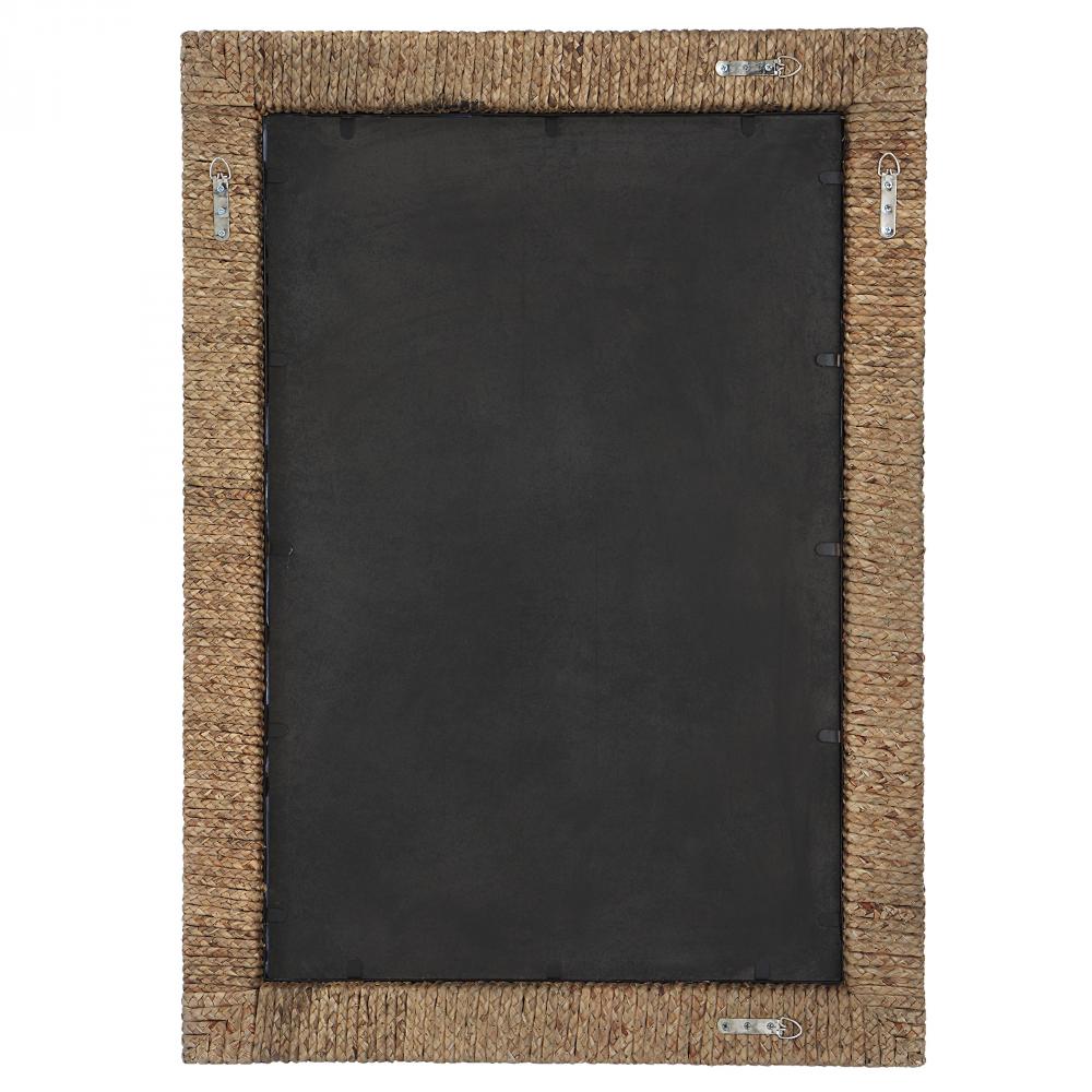 The Island Mirror is Wrapped in Natural Braided Straw with Matte Black Iron Details and A Generous 1 1/4" Bevel. May Be Hung Horizontal or Vertical.