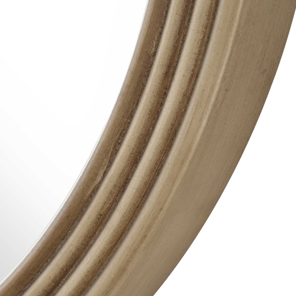 A Modern Twist On Art Deco Design, This Mirror Breaks Away From Traditional Shapes With Its Eye-catching Silhouette. It Features A Sleek, Wooden Frame With Grooved Out Channels Finished In A Lightly Antiqued Gold. The Contrasting Forms Create A Visually Dynamic Piece That Complements Both Classic And Contemporary Interiors.