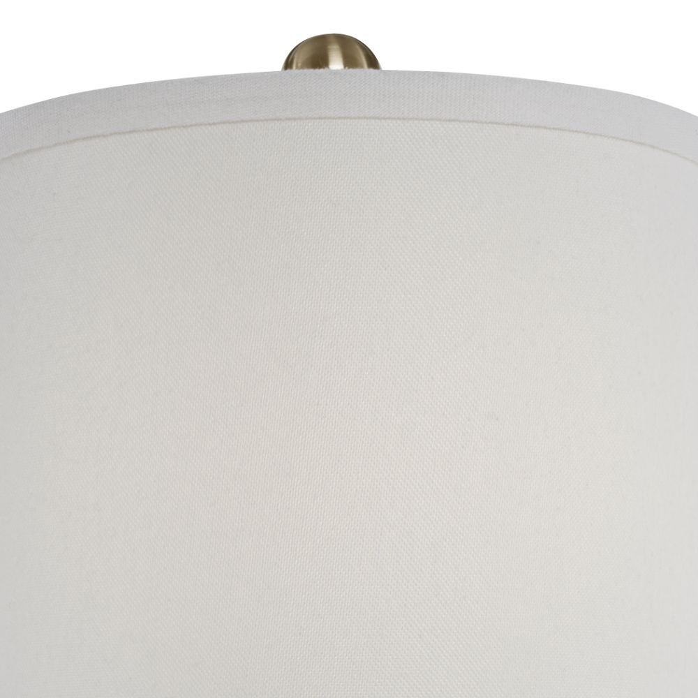 This Versatile Buffet Lamp Features Smooth Iron Details Finished in A Plated Brushed Brass, Accented with A Thick Crystal Base. The Round Hardback Drum Shade is An Off-white Linen Fabric.