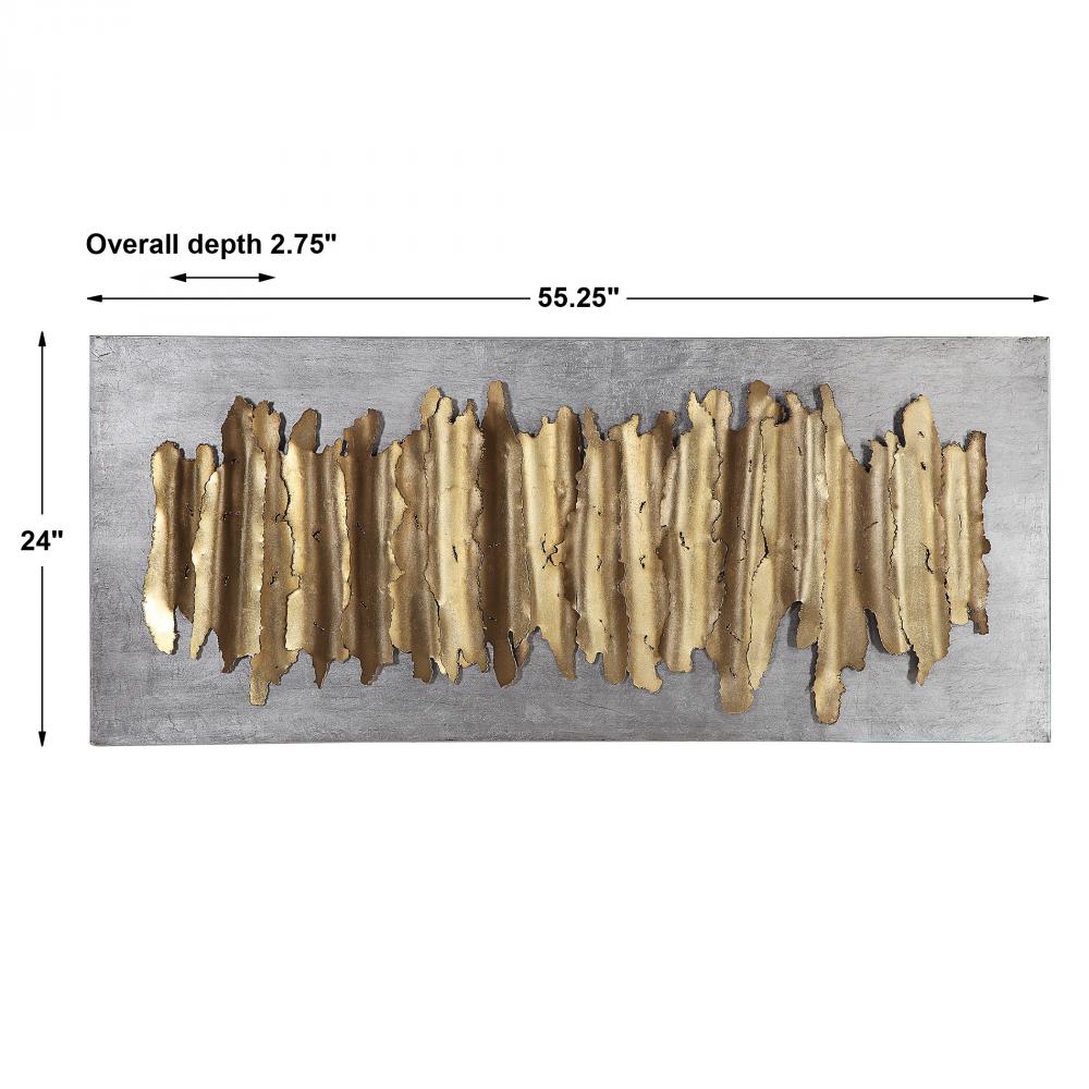 Iron Wall Art Featuring Layers of Metal Strips with Crude Edging, Finished in An Antique Gold Leaf and Set on A Distressed Silver Leaf Iron Backing. May Be Hung Horizontal or Vertical.