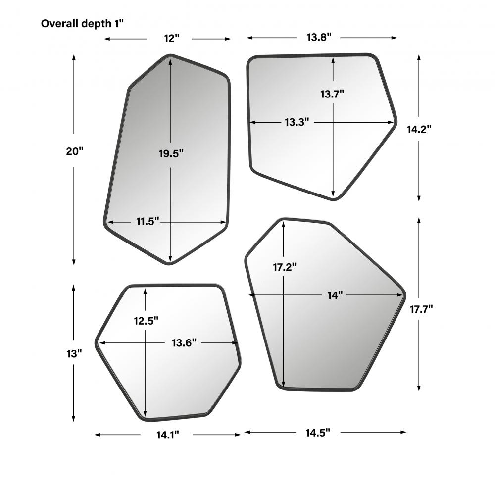 Scandinavian Inspired Mirrors Are Organically Shaped with Petite Metal Frames Finished in Satin Black. Each Mirror May Be Hung Horizontal or Vertical. Sizes: S-14"x13", M1- 18"x14", M2- 15"x14", L-20"x12"