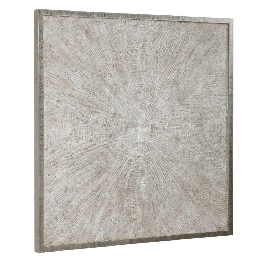 Hand Painted on Canvas, This Artwork Features Heavy Texture with Natural Beige and White Tones and Metallic Silver Highlights. A Textured Antique Silver Gallery Frame Accents The Piece. Due to The Handcrafted Nature of This Artwork, Each Piece May Have Subtle Differences.