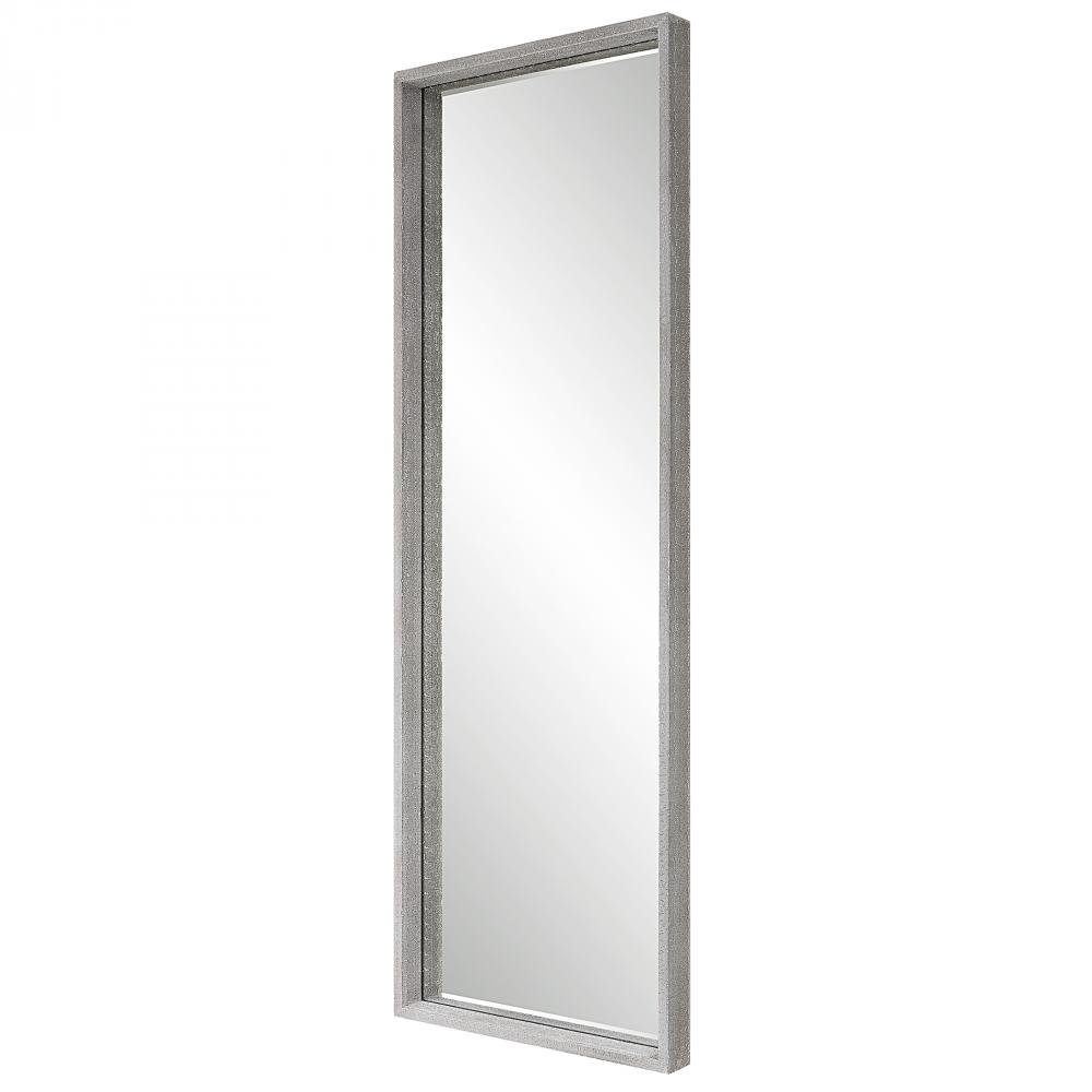 This Oversized Mirror Shows Off Simple Lines and A Beautiful Textured Silver Finish. Can Be Displayed Leaning Against A Wall or Hung Horizontal or Vertical.