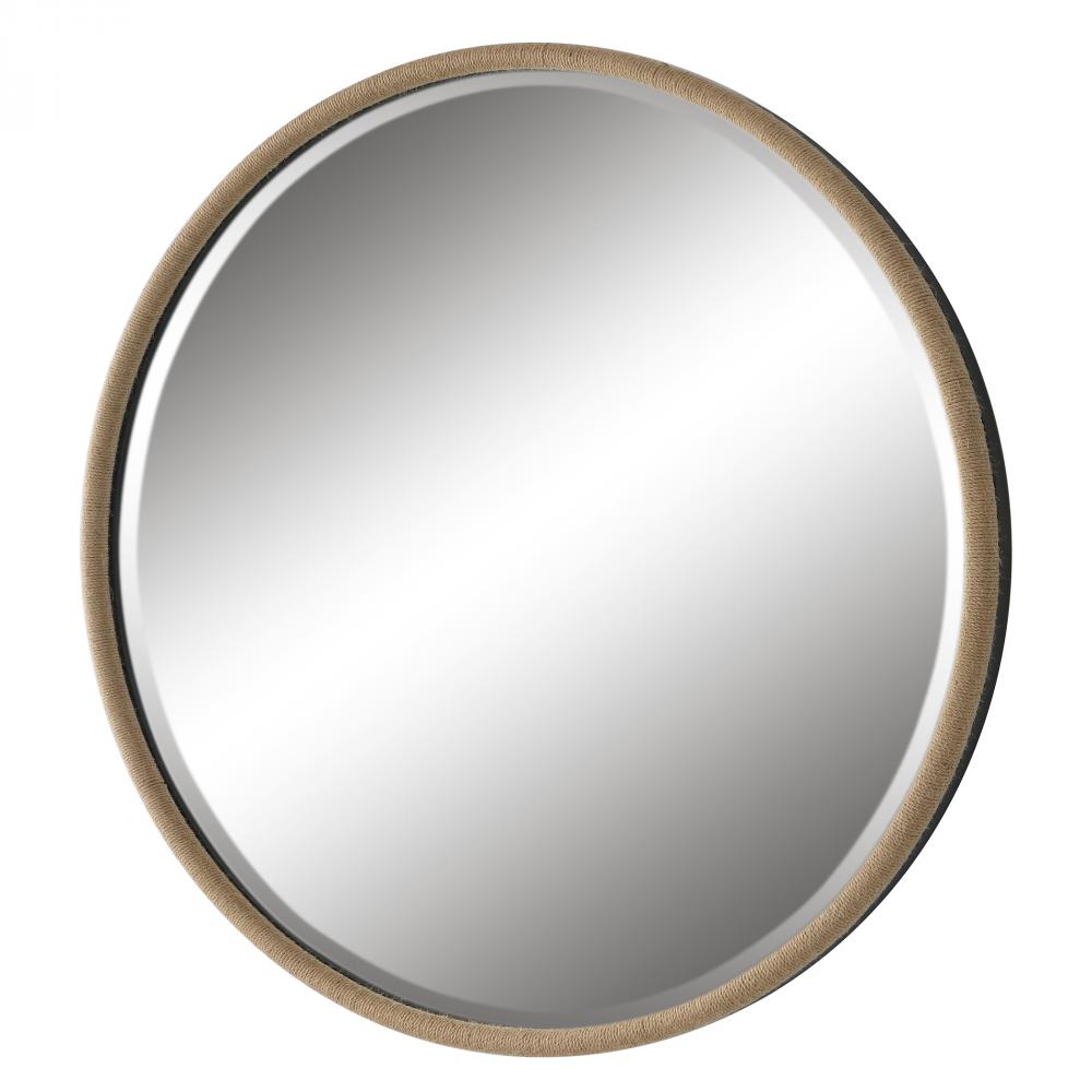 The Ranchero Round Mirror Adds Rustic Flair with A Black Iron Frame Featuring A Rounded Profile Wrapped in Natural Braided Rope. Mirror Has A 1 1/4" Bevel.