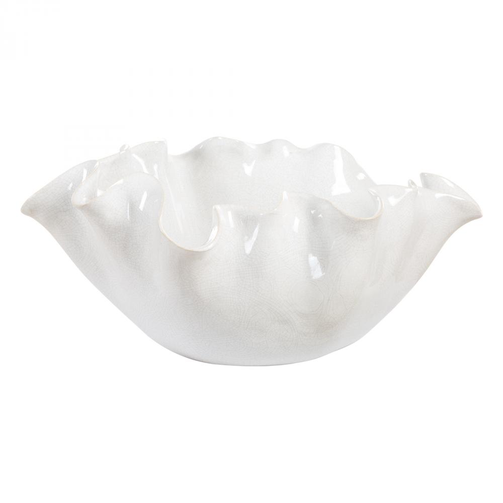 This Elegant Ceramic Bowl Features A Stunning Ruffled Edge Design, Evoking The Delicate Shape Of A Blooming Flower. Its Soft White Glaze With A Subtle Crackle Finish Adds Texture And Sophistication, Making It An Ideal Statement Piece For Any Modern Or Classic Decor. Perfect For Displaying As A Centerpiece Or For Functional Use, This Bowl Blends Art And Practicality Effortlessly.