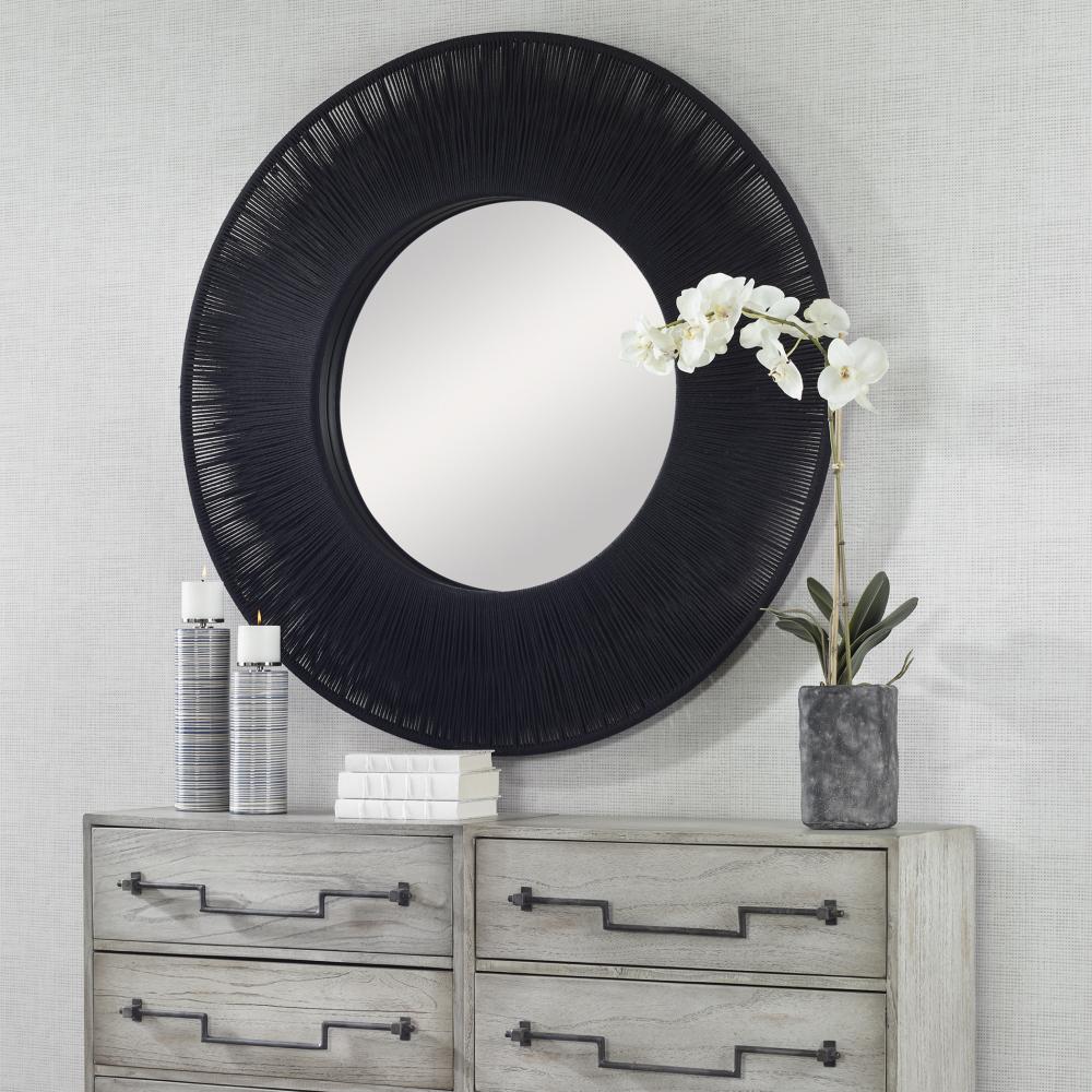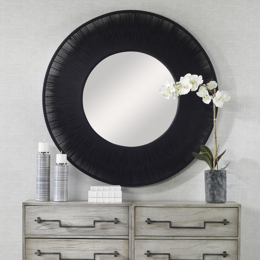 With Combined Natural Texture and Materials, This Round Mirror Pays Homage to Its Coastal Inspiration. Dyed Black Rope is Stretched Over A Solid Iron Frame to Create A Casual and Versatile Design.
