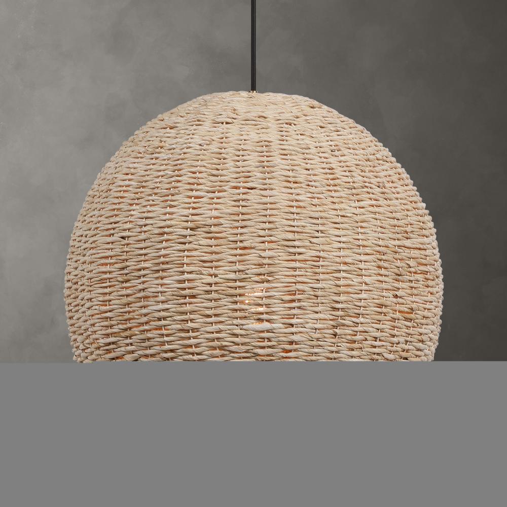 Woven Seagrass, A Natural Renewable and Sustainable Material, in A Dome Shape Around A Metal Frame with Slight Antique Brass Accents Give This 1 Lt Pendant Textured Warmth Bringing Nature Inside. 1-100 Watt Max Edison Socket. Bulb Not Included. Supplied with 15' Cord for Adjustable Installation. Note That Since Seagrass is A Natural Material, There May Be Slight Color Variations Within A Piece.
