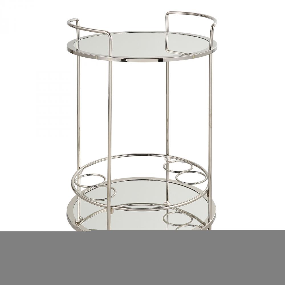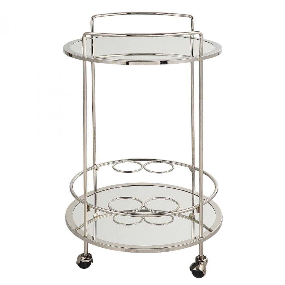 The Spritz Bar Cart Rolls Wherever The Party Goes! The Metal Cart is Finished in Polished Chrome with Dual Mirrored Shelves for Optimal Storage and Display. The Petite Round Frame Sits Atop Rolling Casters, Enabling Easy Placement in Any Living or Dining Space.