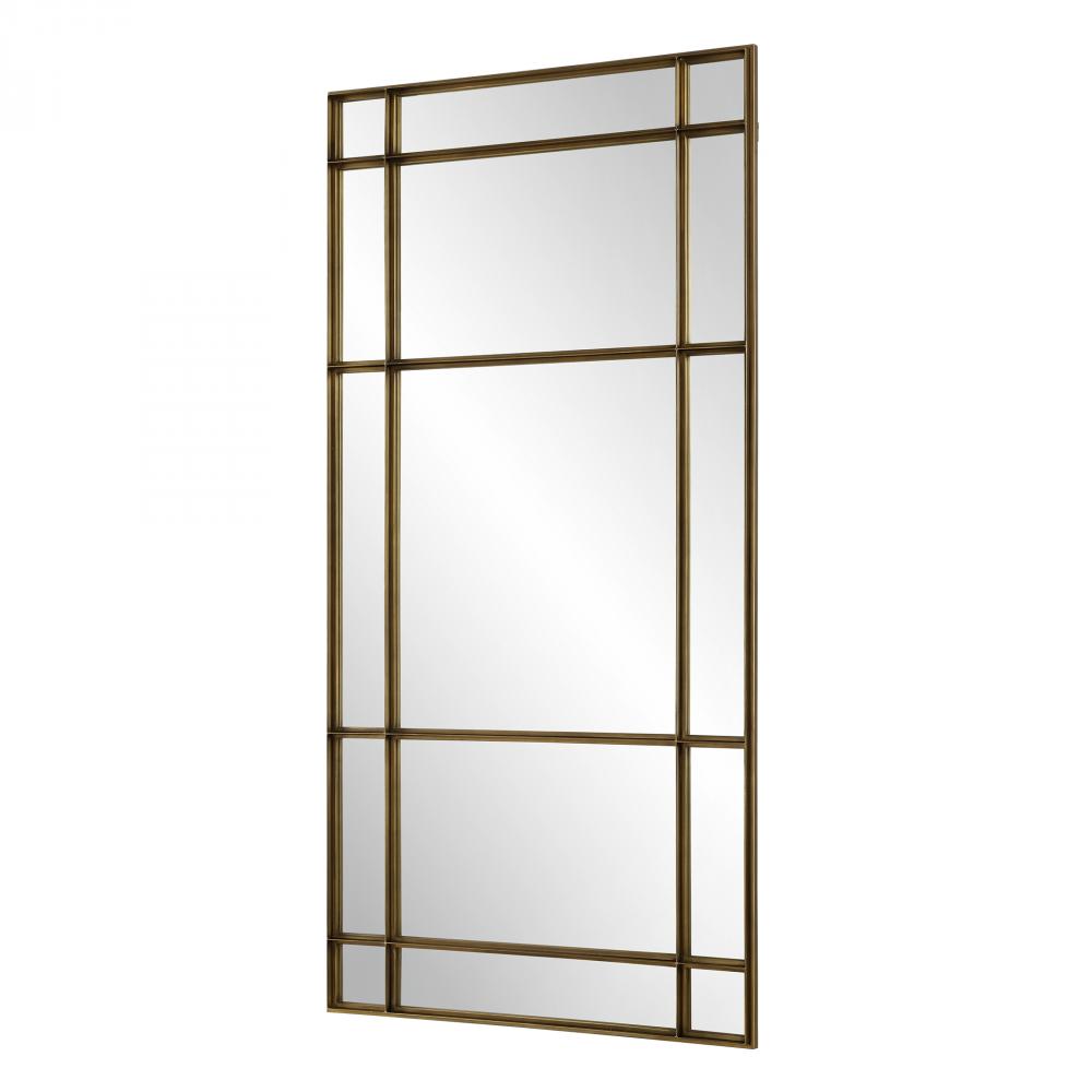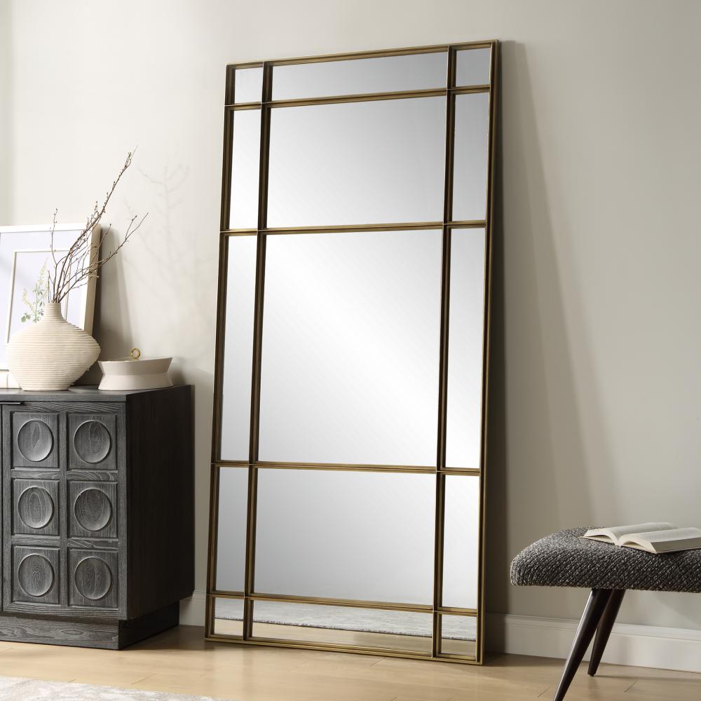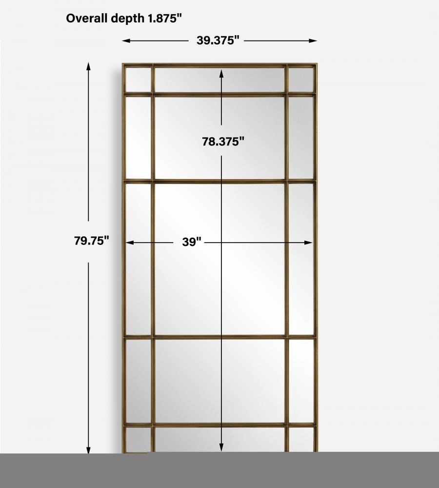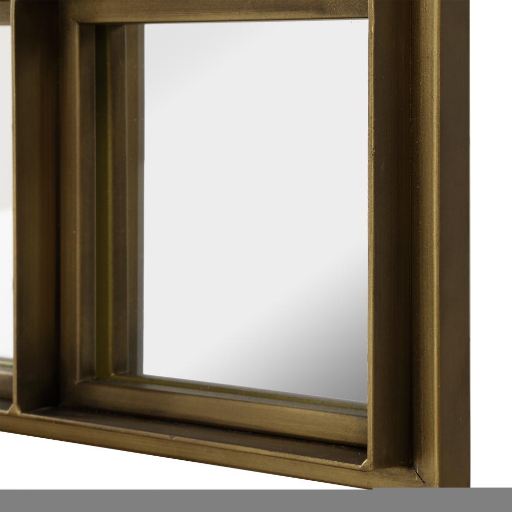 This Oversized Mirror Features A Heavy Iron Frame With Deep Channels Reminiscent Of Vintage Warehouse Windows. Finished In A Heavily Antiqued Gold, It Adds A Touch Of Industrial Charm And Timeless Elegance To Any Room.