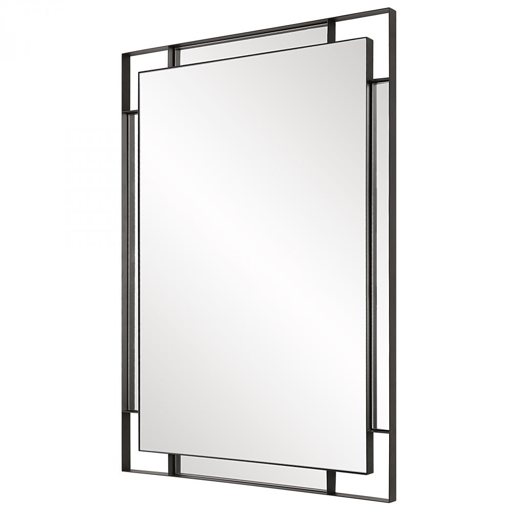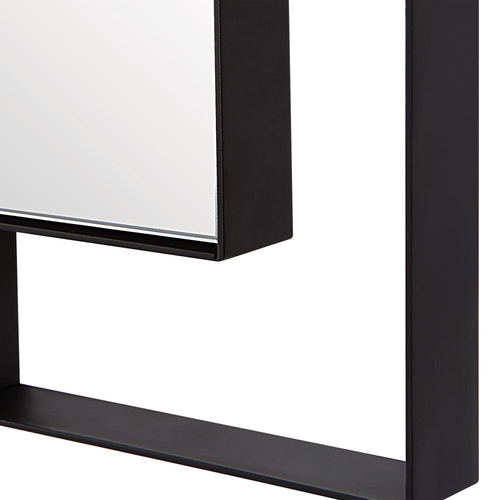 The Stellan Mirror Features A Strap Style Frame Finished in A Sleek Matte Black Surrounding A Floating Polished Edge Mirror with Accompanying Side Mirrors for Added Visual Dimension. May Be Hung Vertical and Horizontal.