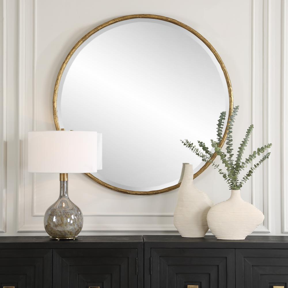 With Its Aged Gold Finish And Subtle Plaster Effect, The Sutton Round Mirror Is A Blend Of Timeless Elegance And Rustic Charm. Mirror Features A 1" Bevel.