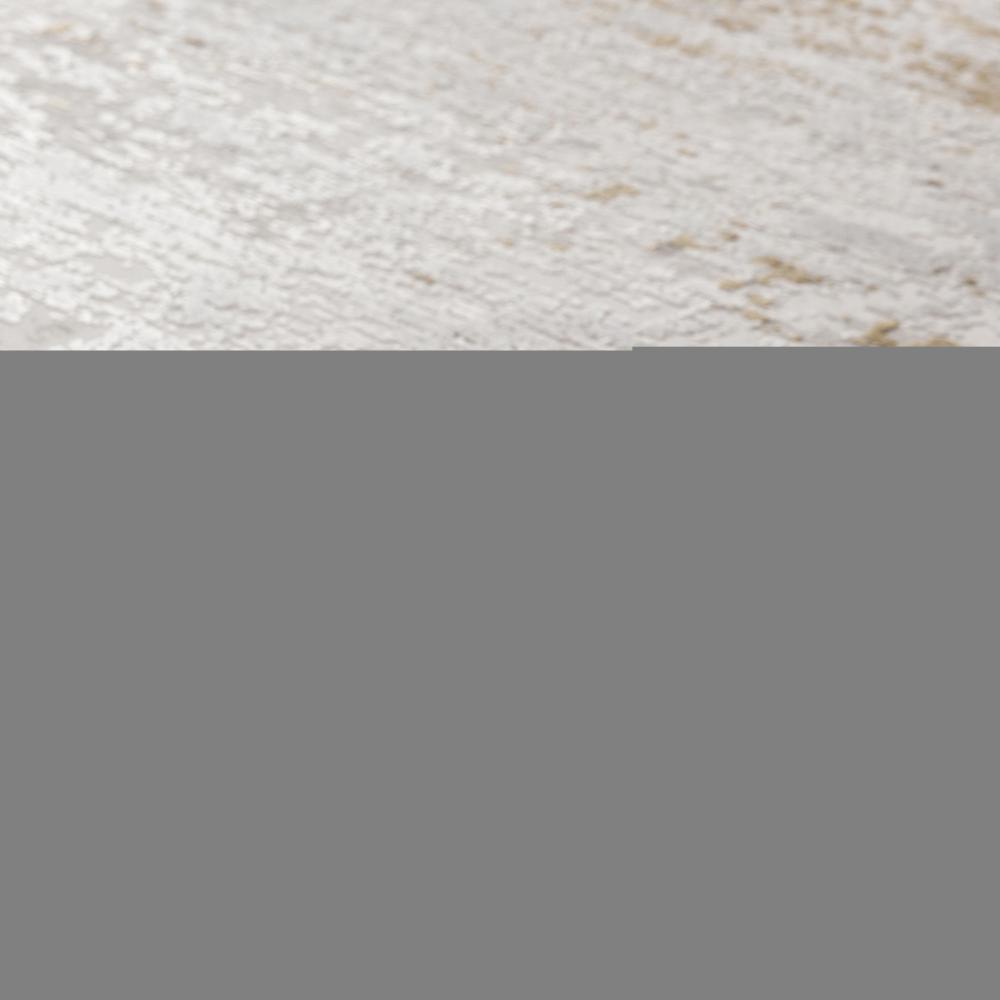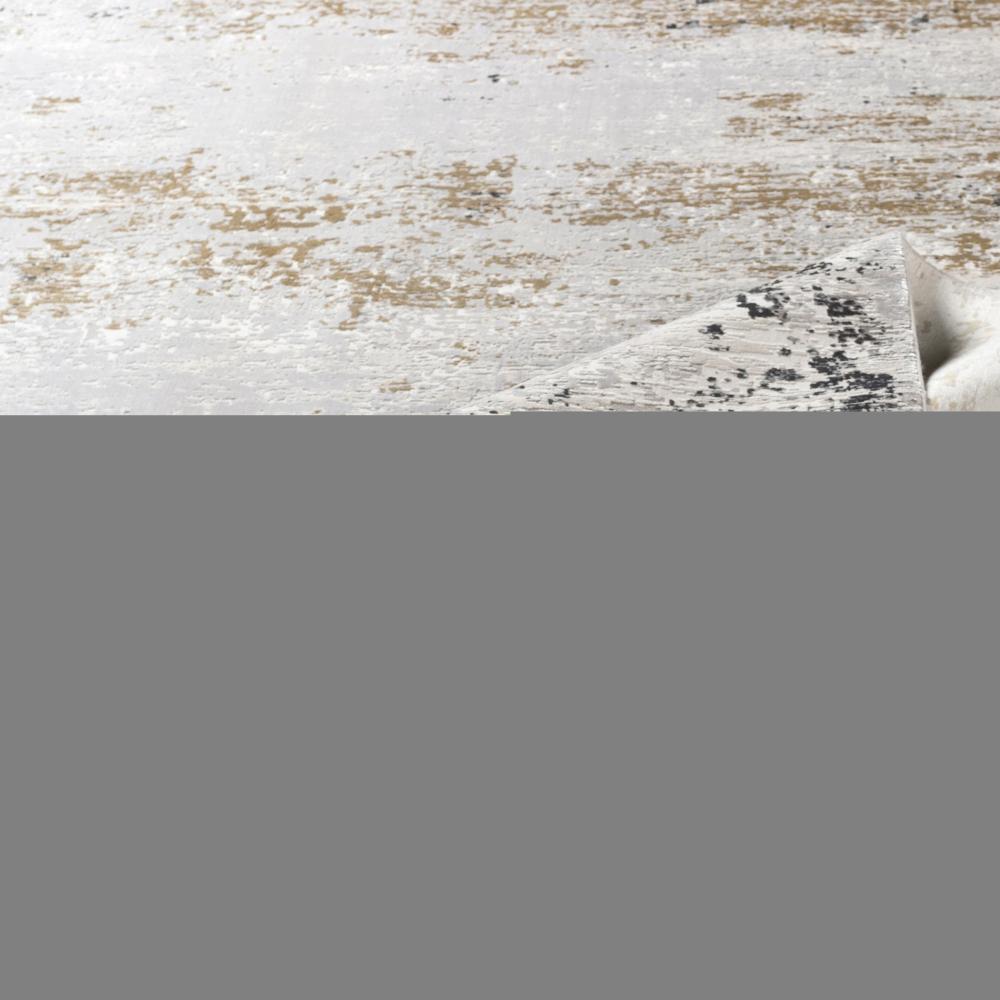 This Machine Woven Rug Features An Abstract Design in Tones of White, Charcoal, Saffron and Subtle Light Gray, Constructed From A Mix of Lustrous Viscose and Acrylic for A Soft to The Touch Feel.