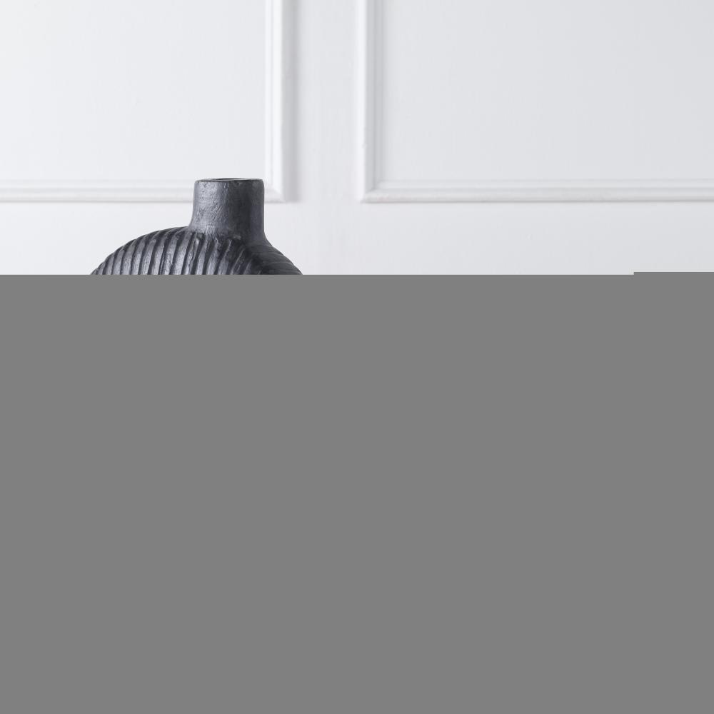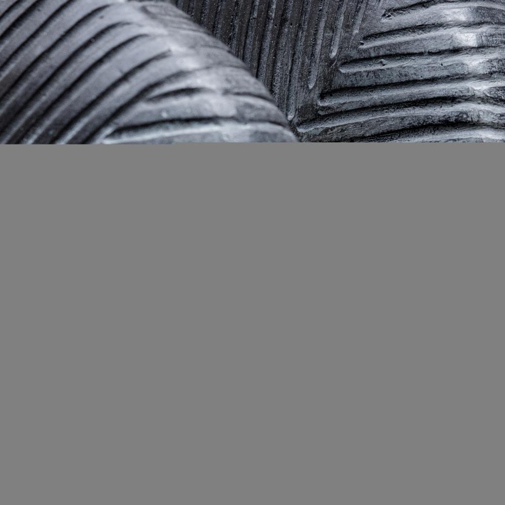 This Set of Vases is Accented By Contemporary Geometric Carving in Aged Black with Off-centered Openings, Perfect for Floral Stems or Placed Among Your Other Favorite Accessories. Sizes: S-12x12x4, L-14x16x5