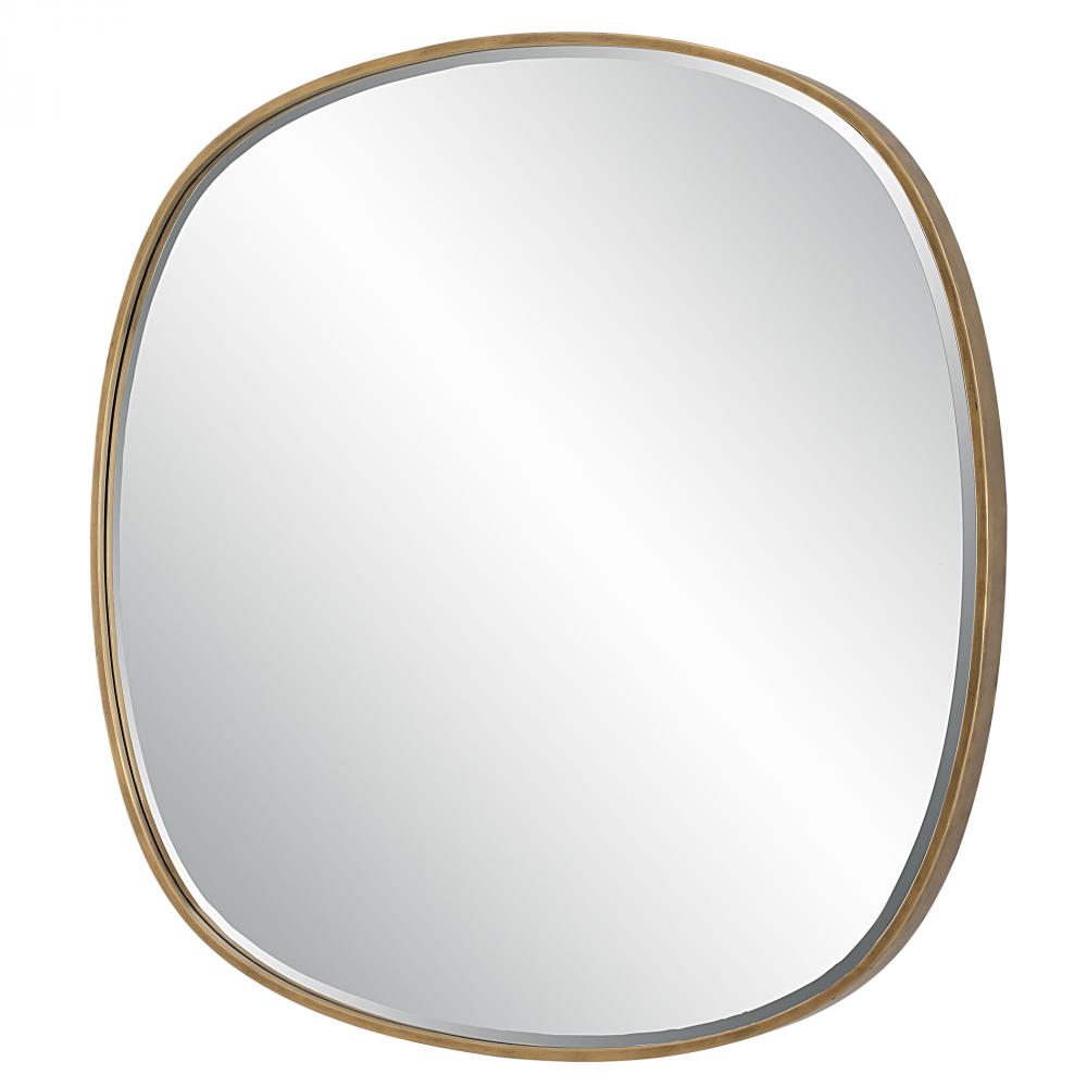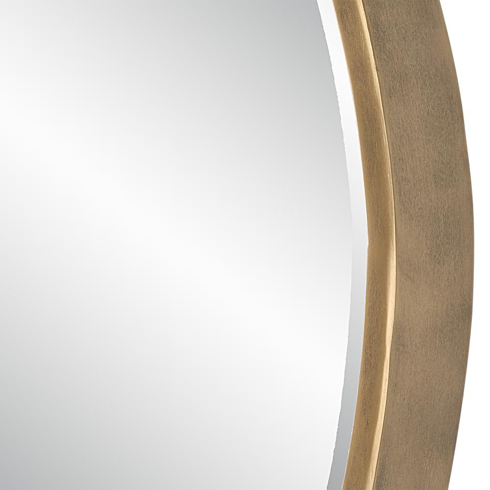 This Shapely Mirror Features An Iron Frame Finished in A Heavily Antiqued Gold for An Updated Appeal to The Traditional Round. Mirror Has A Generous 1 1/4” Bevel.