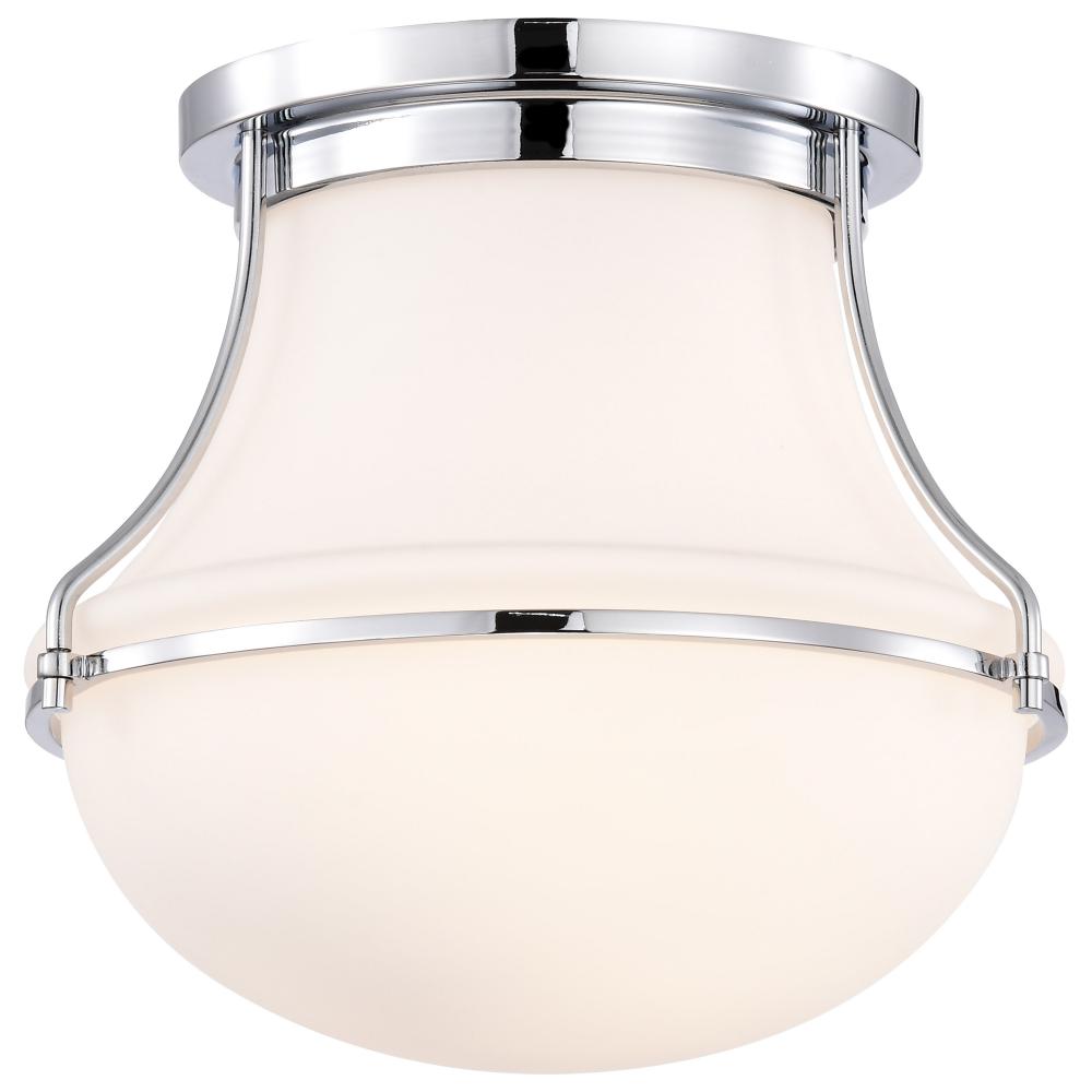 Valdora 1 Light Flush Mount; 10 Inches; Polished Nickel; White Opal Glass