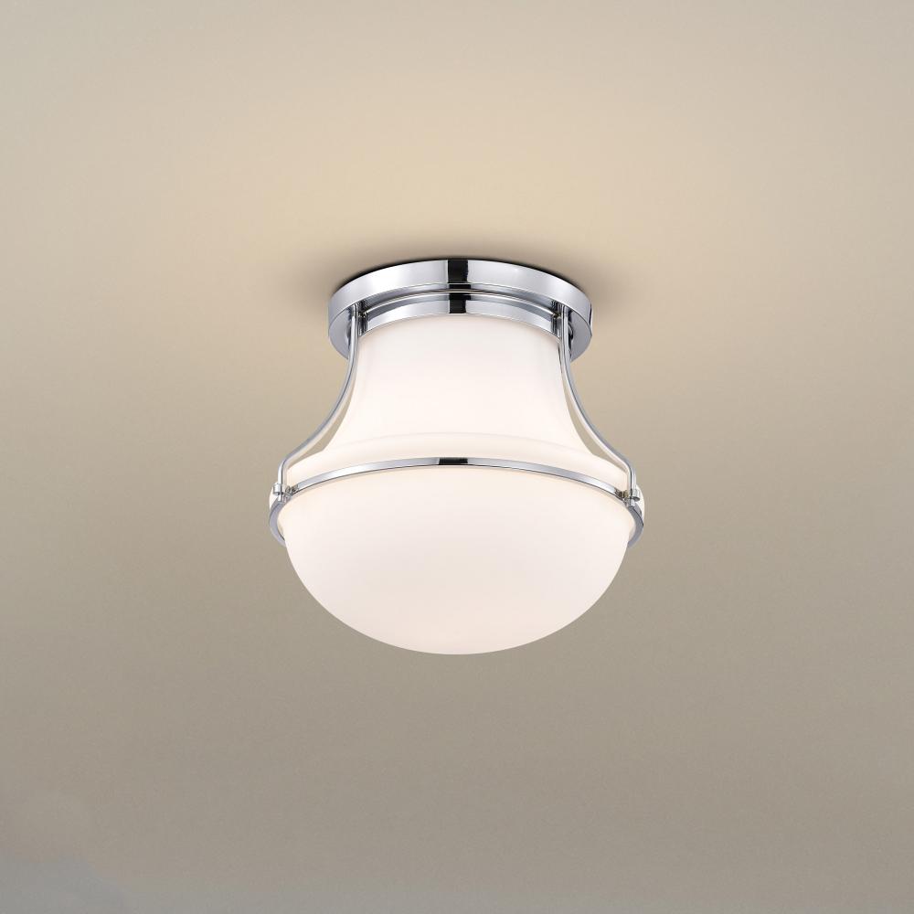 Evoke a sense of tranquility with the Valdora 60-7870 small flush mount, which pays homage to classic, luminous illumination. A schoolhouse-inspired shade floats in a chic finish of polished nickel, perfectly complimenting the fixture base and white hue of