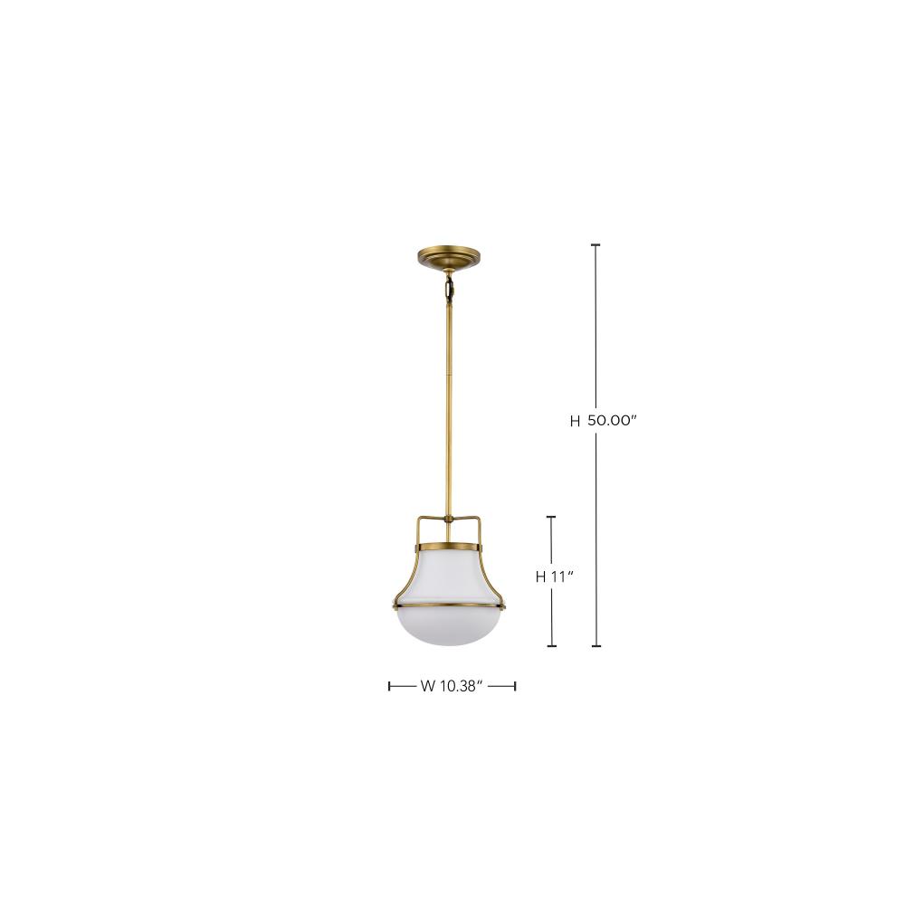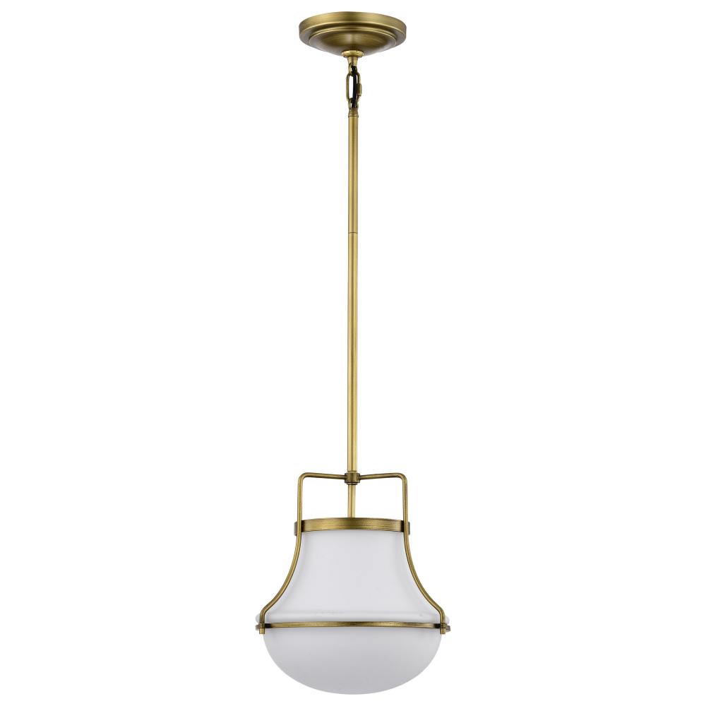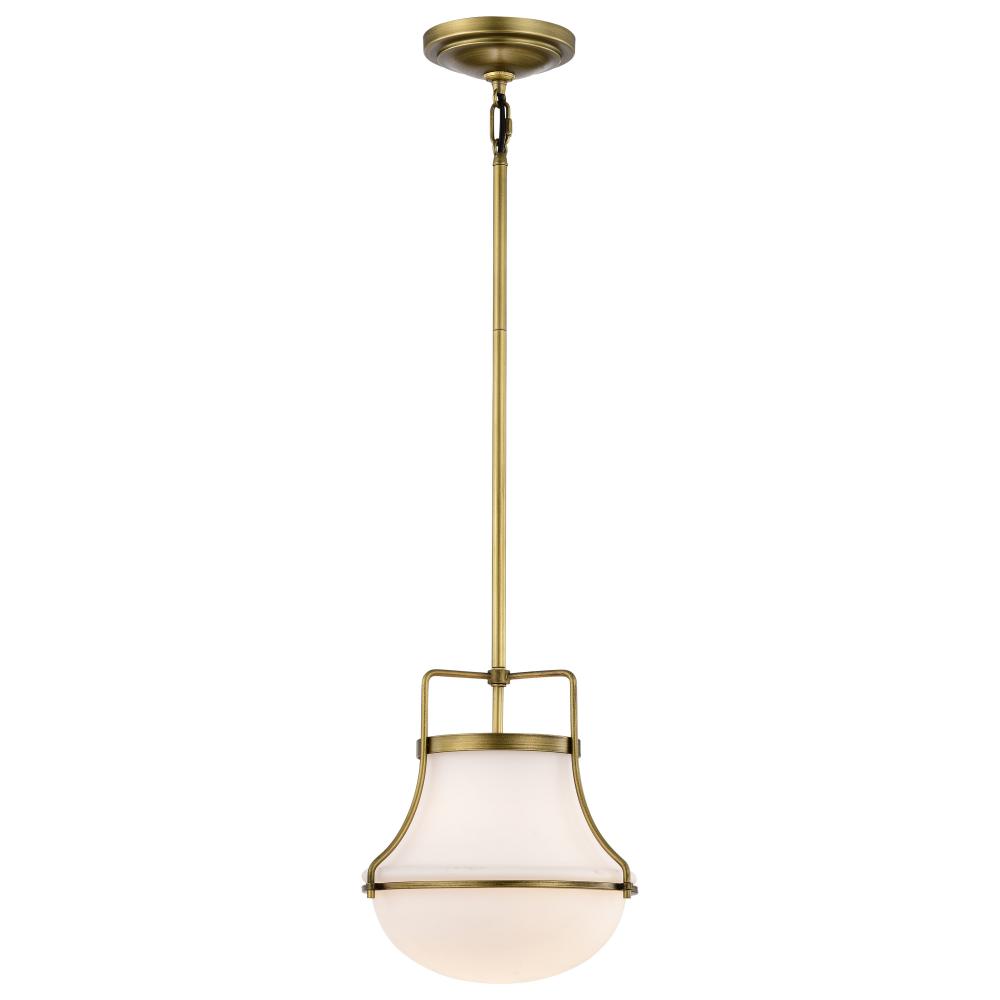 Valdora 1 Light Pendant; 10 Inches; Natural Brass Finish; White Opal Glass