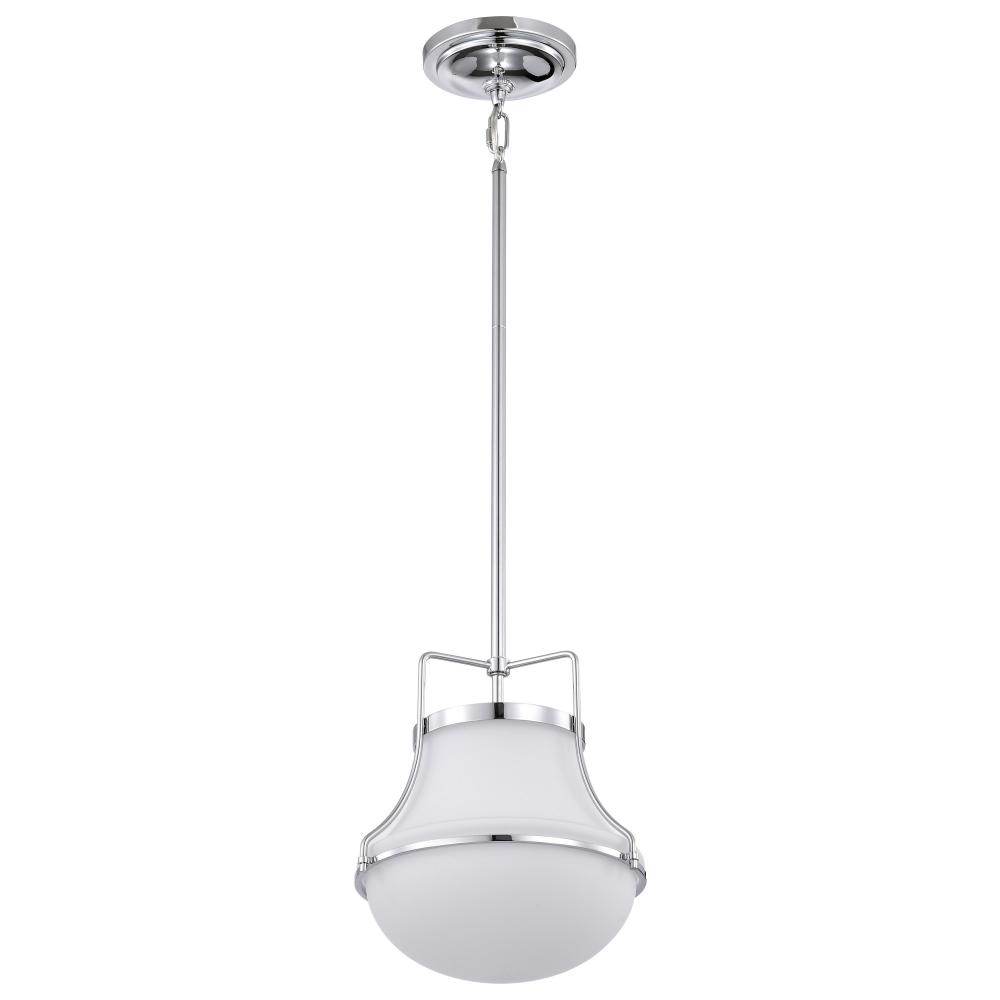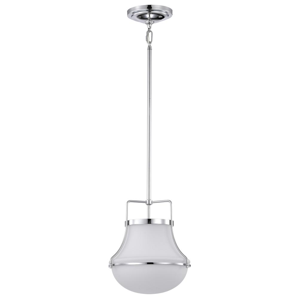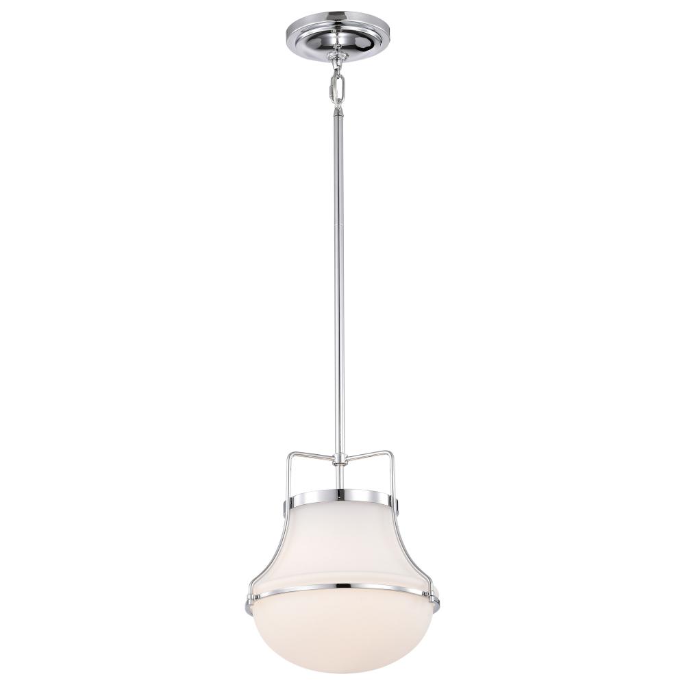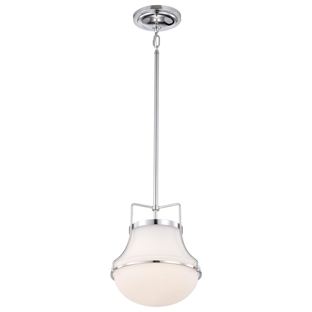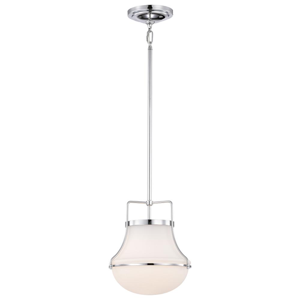 Evoke a sense of tranquility with the Valdora 60-7872 small pendant, which pays homage to classic, luminous illumination. A schoolhouse-inspired shade floats in a chic finish of polished nickel, perfectly complimenting the fixture base and white hue of the