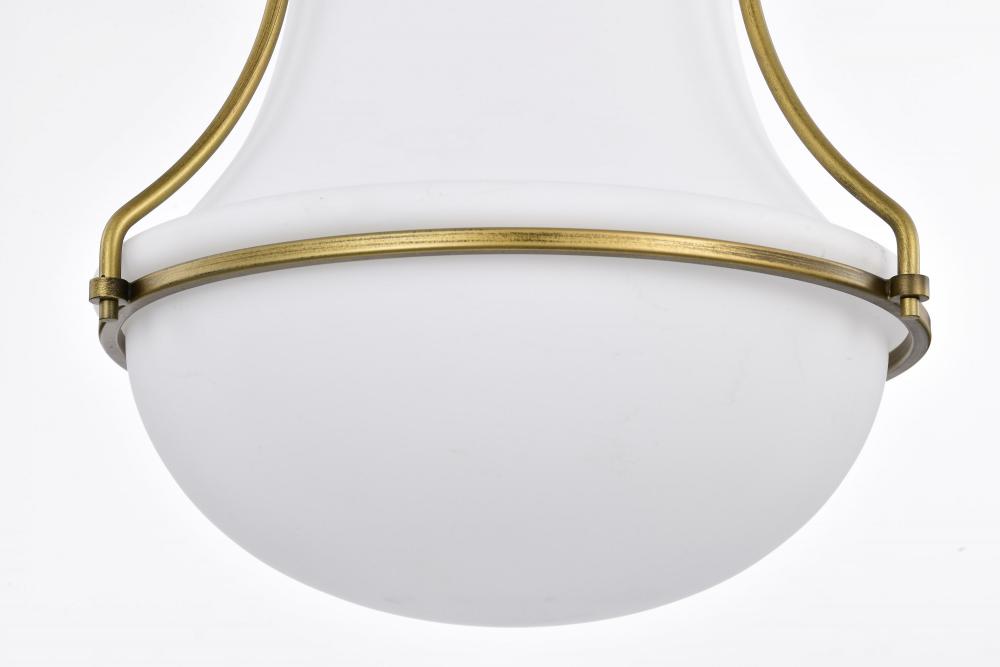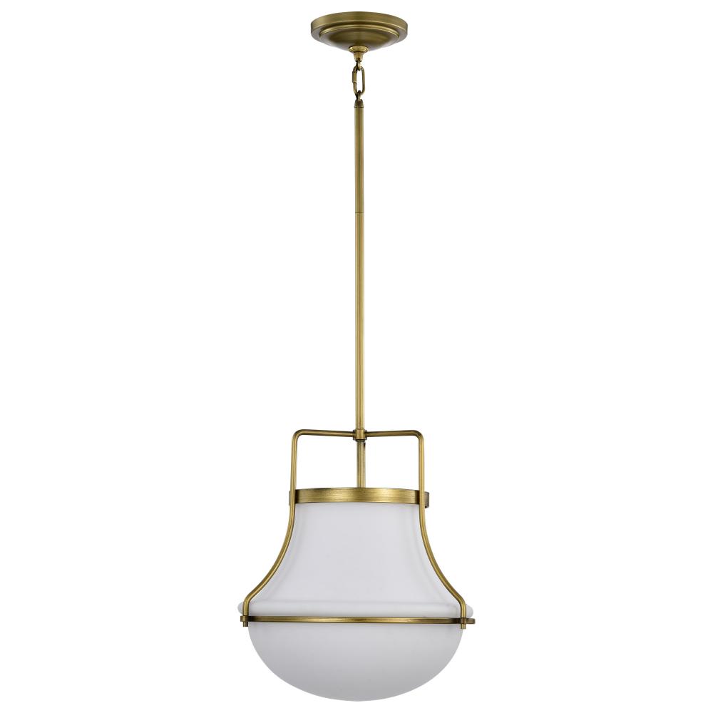 Valdora 1 Light Pendant; 14 Inches; Natural Brass Finish; White Opal Glass