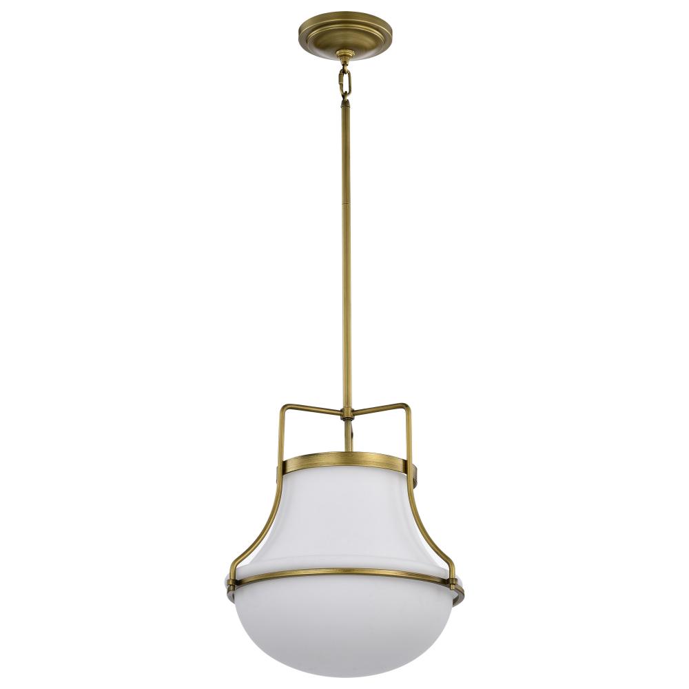Evoke a sense of tranquility with the Valdora 60-7863 medium pendant, which pays homage to classic, luminous illumination. A schoolhouse-inspired shade floats in a rich finish of natural brass, perfectly complimenting the fixture base and white hue of the