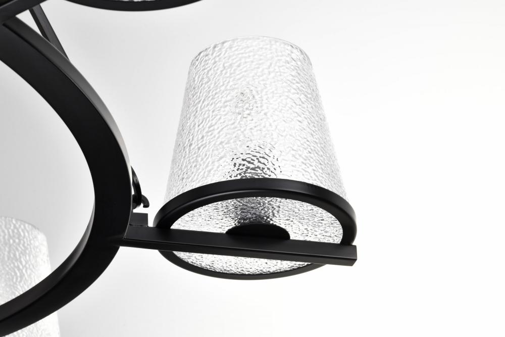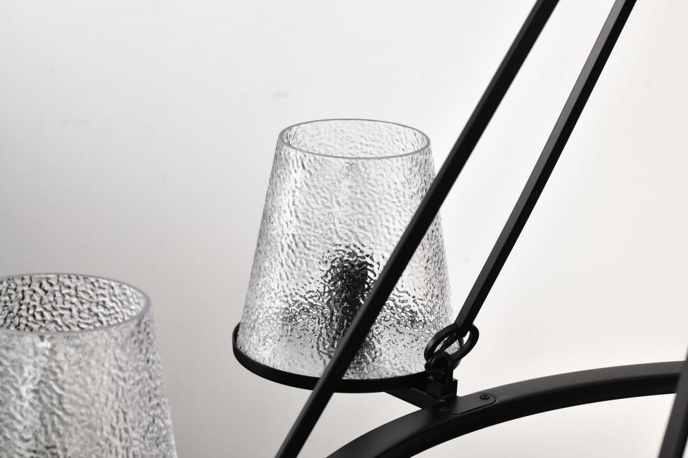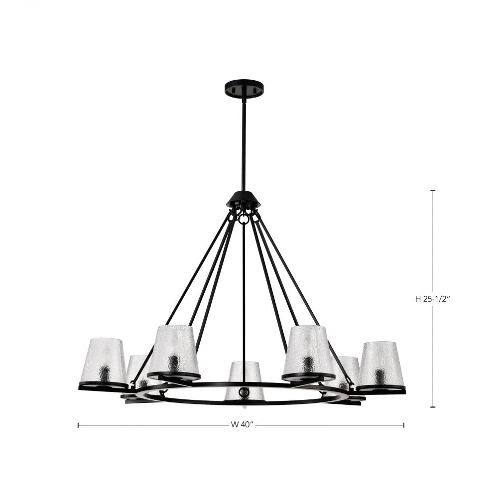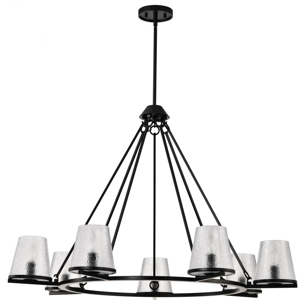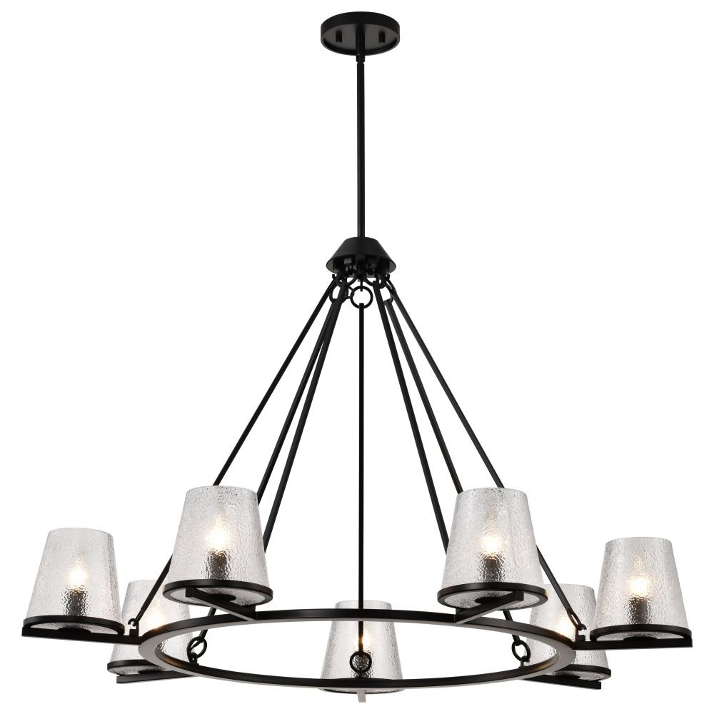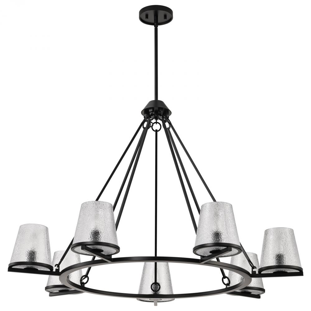 Valentine; 7 Light Chandelier; Black Finish; Hammered Glass