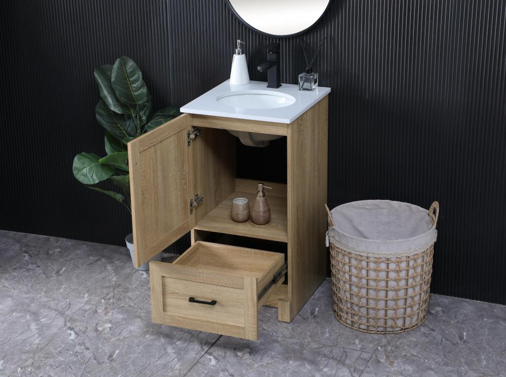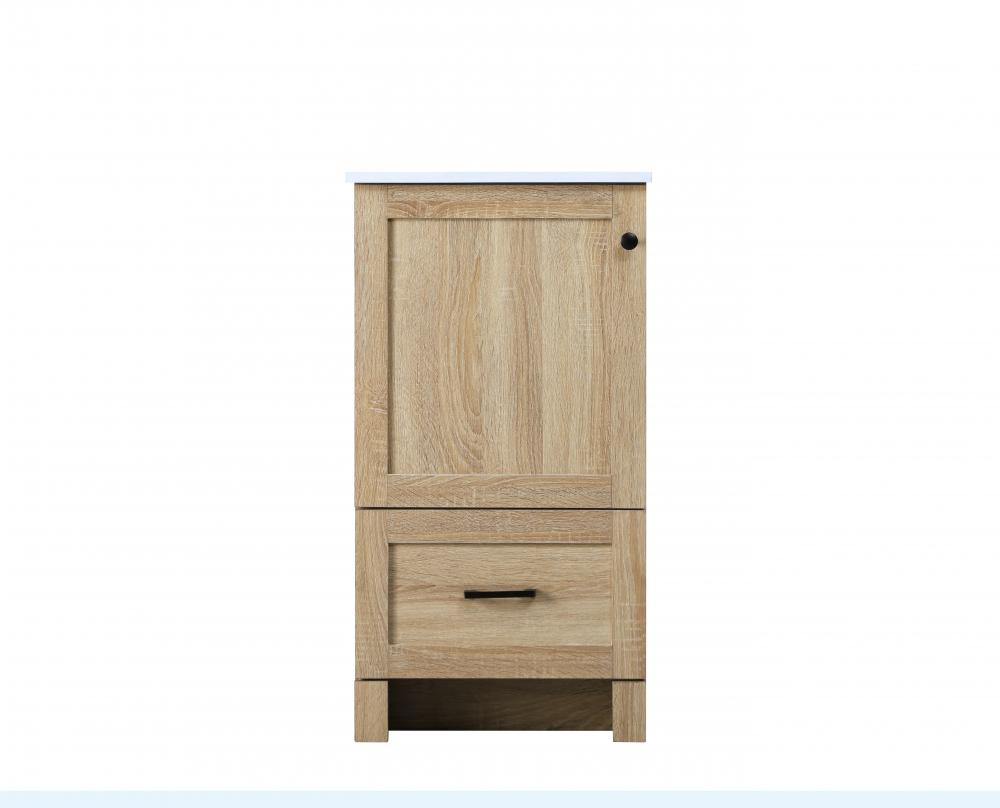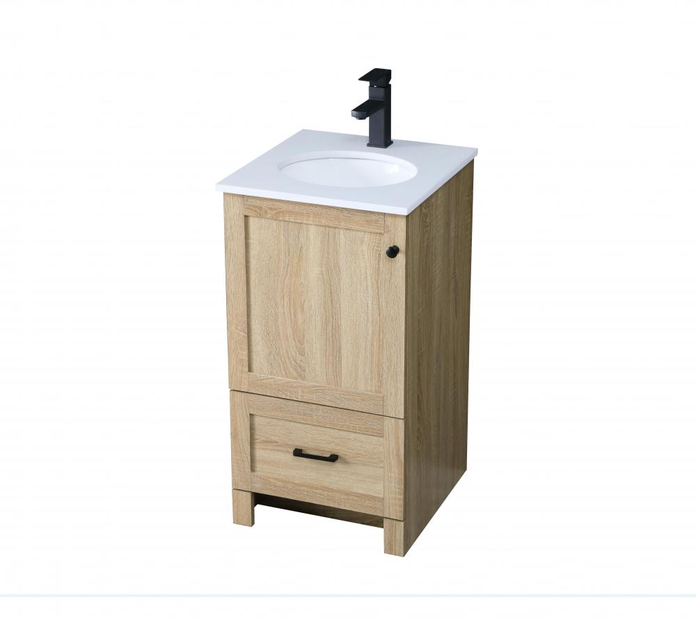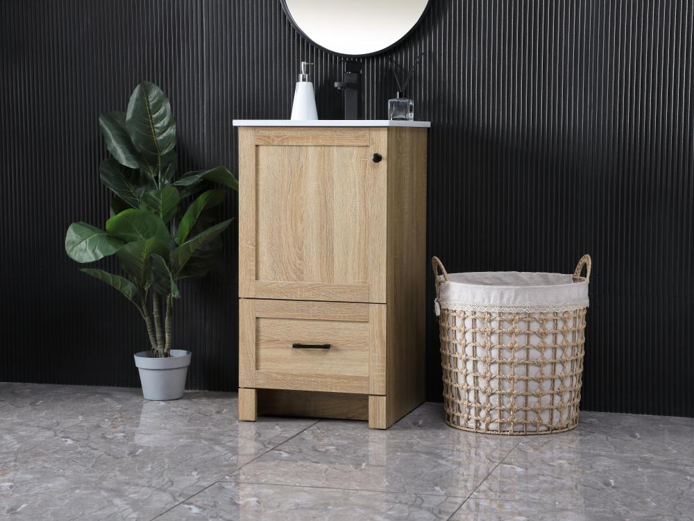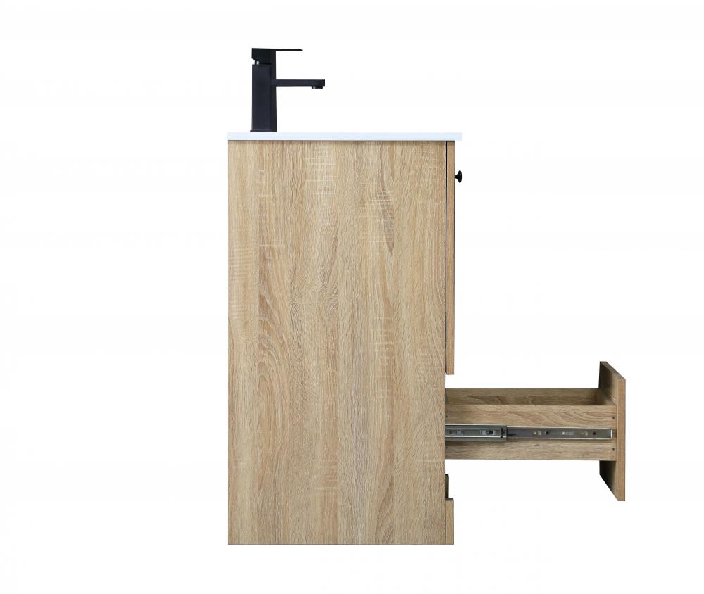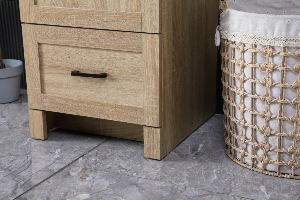 Revel in the beauty of a vanity that mimics the charm of real wood without the maintenance, boasting a faux wood look that adds a touch of natural warmth and rustic sophistication to your bathroom.