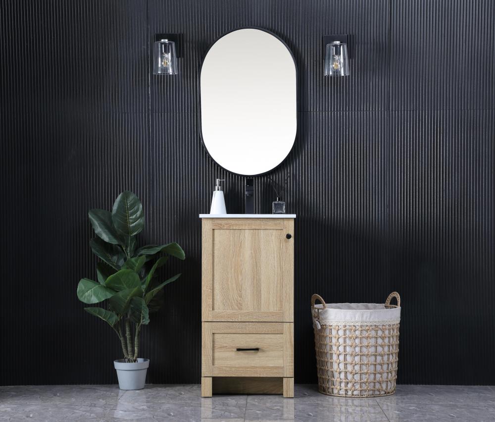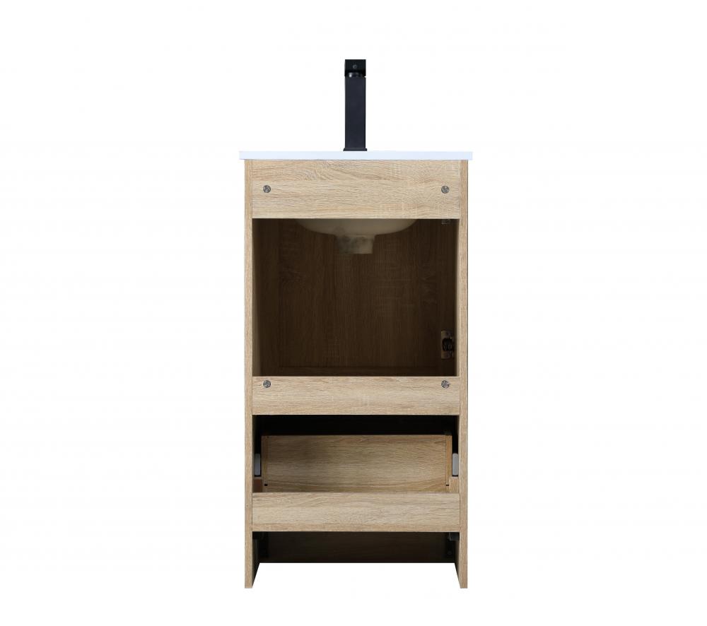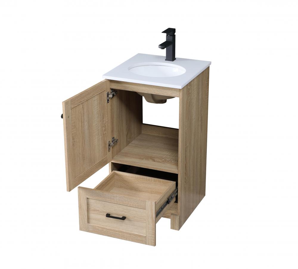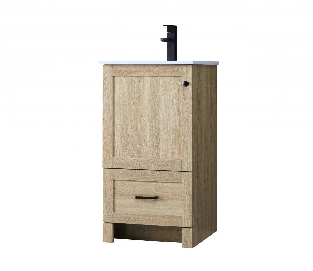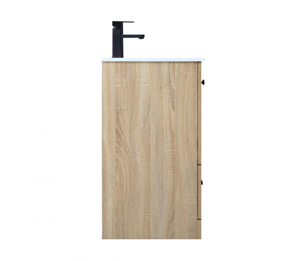 Revel in the beauty of a vanity that mimics the charm of real wood without the maintenance, boasting a faux wood look that adds a touch of natural warmth and rustic sophistication to your bathroom.