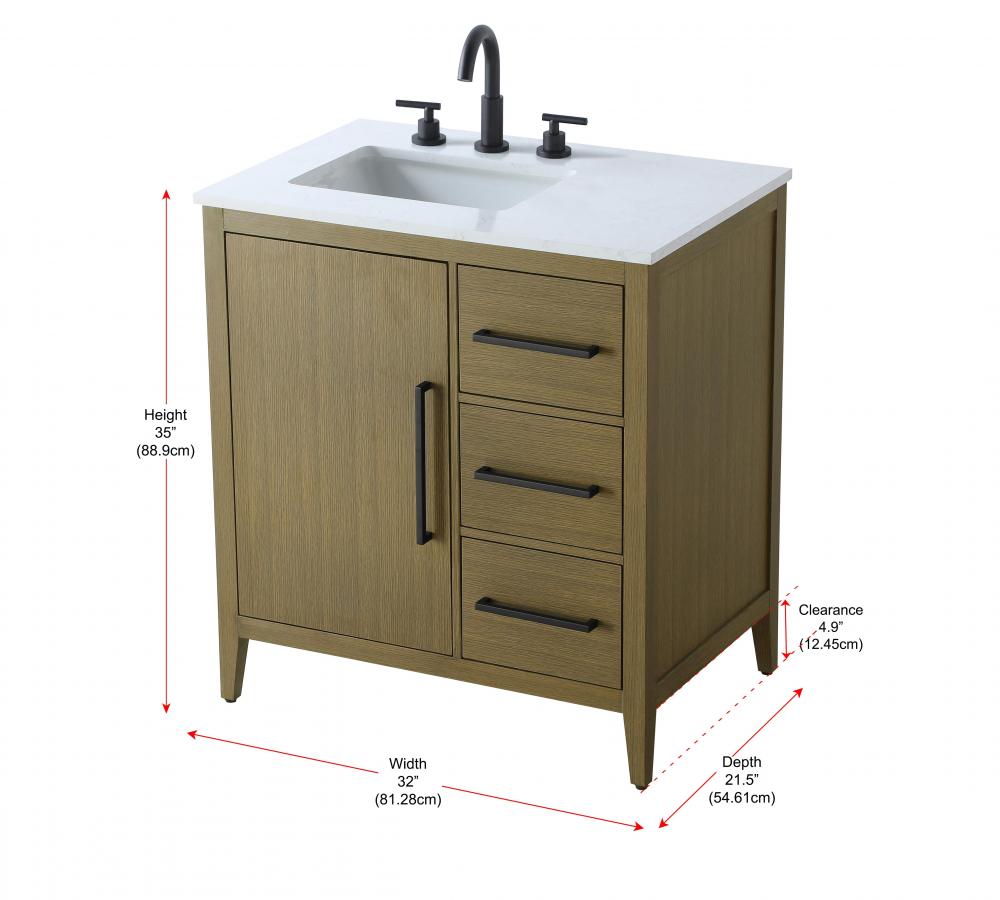 Vanity Cabinet 1Dr 3Dw 32x21.5x35 Chestnut Brown