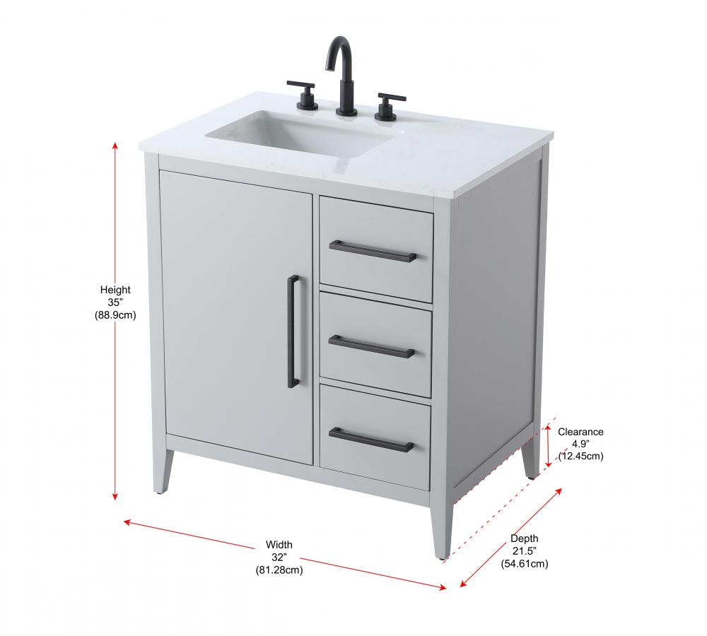 Vanity Cabinet 1Dr 3Dw 32x21.5x35 Grey