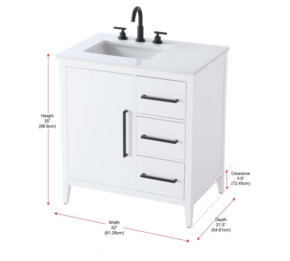 Vanity Cabinet 1Dr 3Dw 32x21.5x35 White