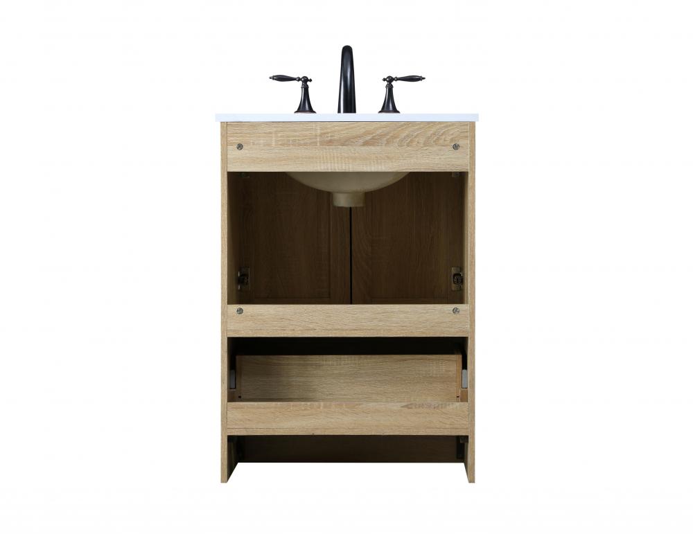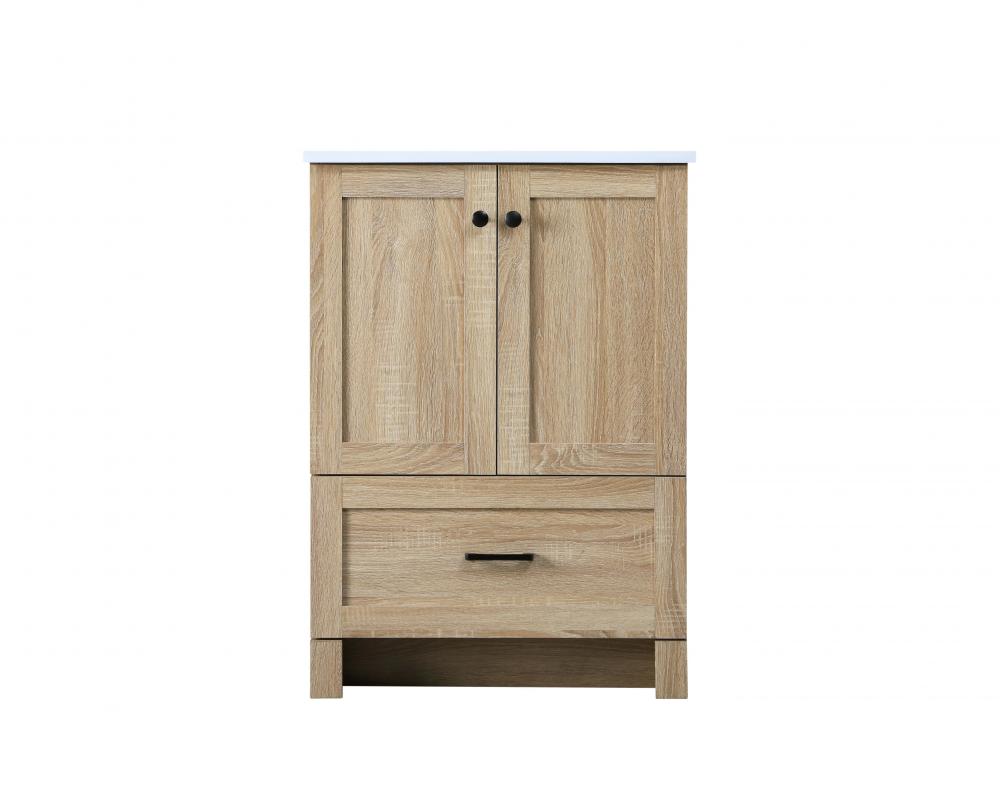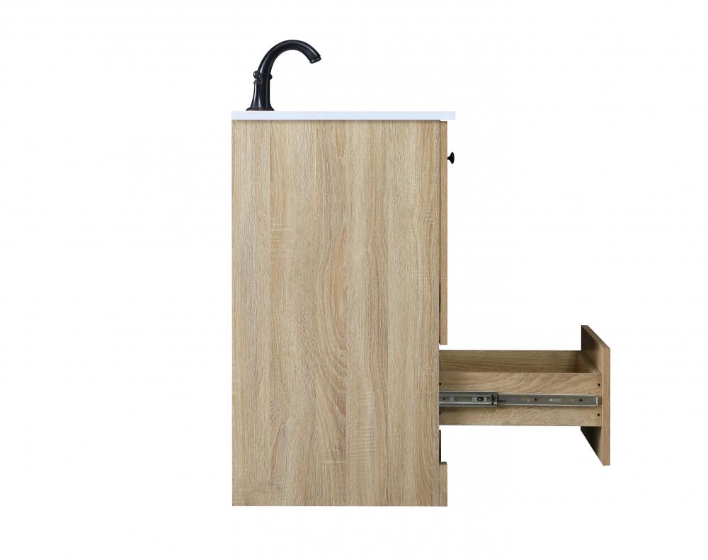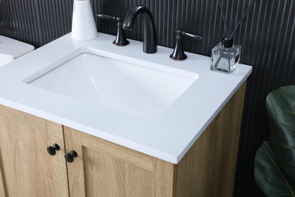 Revel in the beauty of a vanity that mimics the charm of real wood without the maintenance, boasting a faux wood look that adds a touch of natural warmth and rustic sophistication to your bathroom.