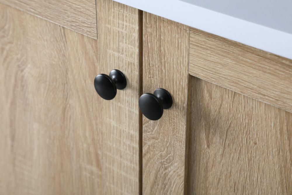Indulge in the details with high-quality knobs and pulls adorning the drawers and doors, adding a touch of sophistication and functionality to your vanity.