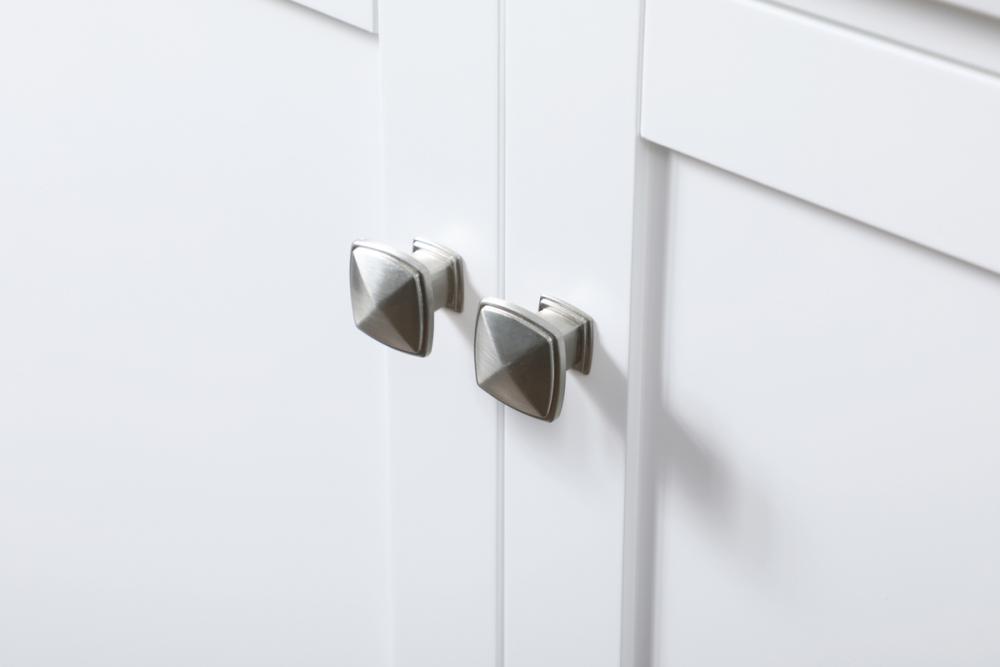 Designed with stylish hardware, our vanity is adorned with three brushed nickel knobs, adding a personalized touch to its design while ensuring convenient access to storage.