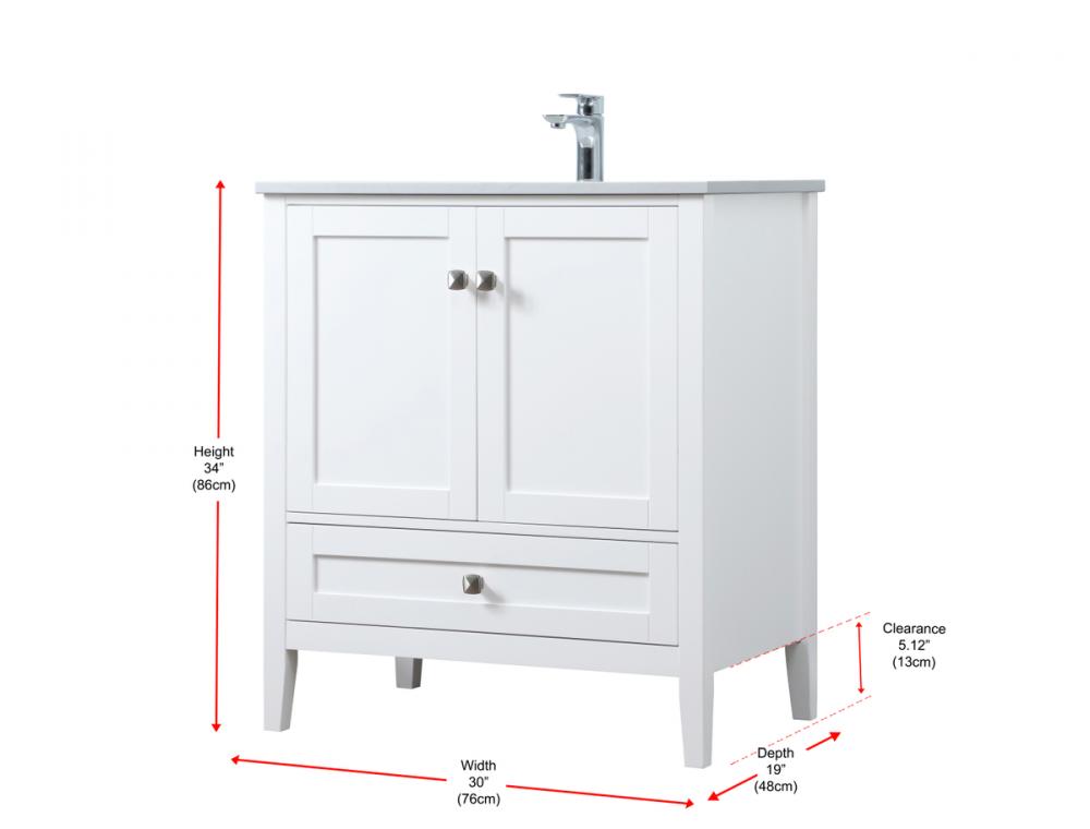Vanity Cabinet 2dr 1dw W30''xD19''xH34" White