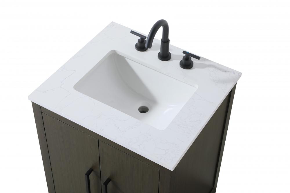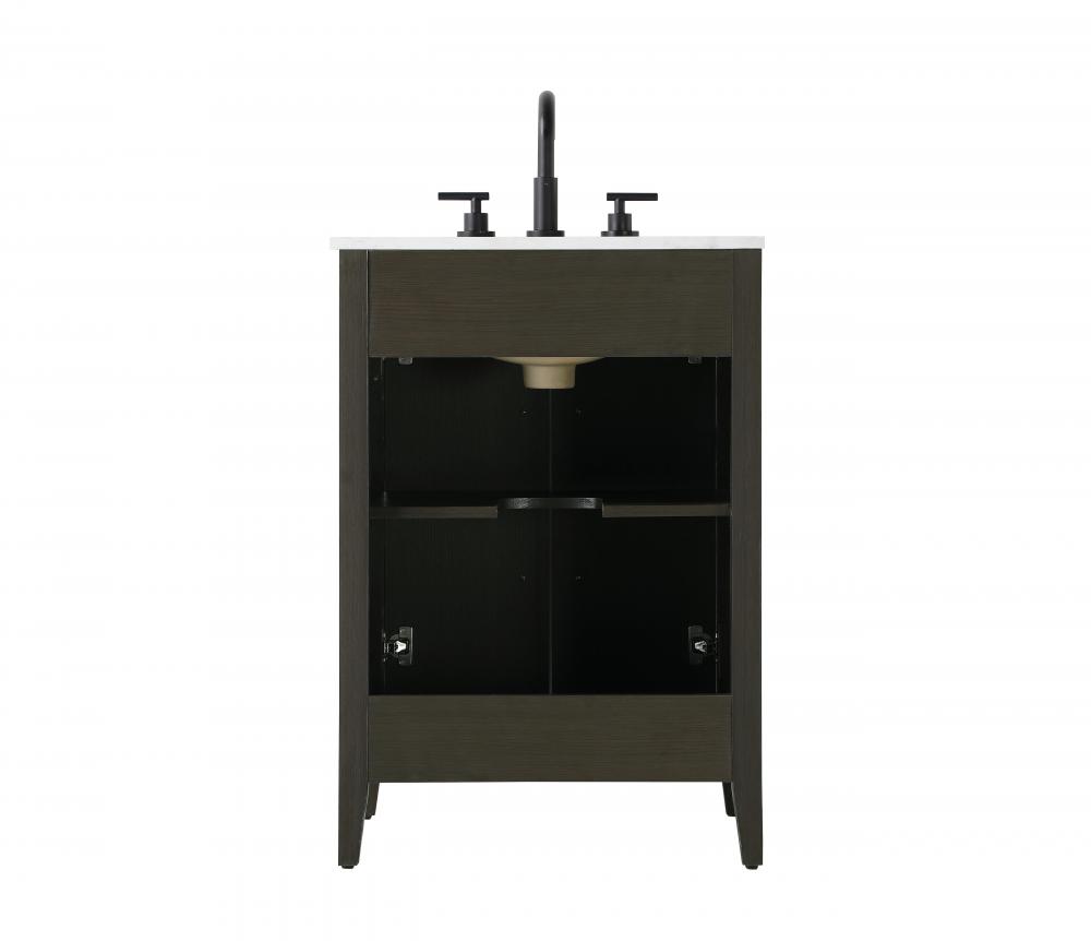 Bring both elegance and practicality to your bathroom with this transitional vanity, available in a selection of rich finishes that highlight the beauty of faux wood grain in shades of mocha, chestnut, and honey, along with classic white and modern grey. The flat door panels and sleek black metal pulls create a minimalist yet refined aesthetic, while the soft-closing drawers and tapered legs with levelers provide smooth, functional operation. Topped with a luxurious white engineered marble countertop and featuring a porcelain sink, this vanity combines timeless style with modern efficiency. Thoughtfully designed with U-shaped cutout for plumbing, it offers ample storage and easy installation, making it the perfect centerpiece for any bathroom.