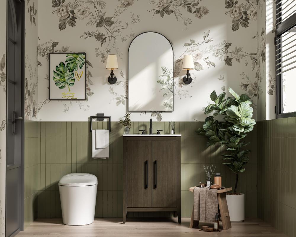 The minimalist flat door panels create a sleek, modern appearance, perfect for blending into transitional and contemporary bathroom designs.
